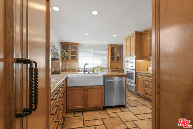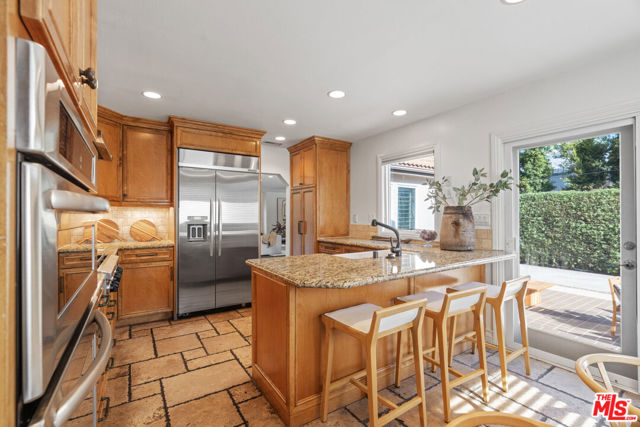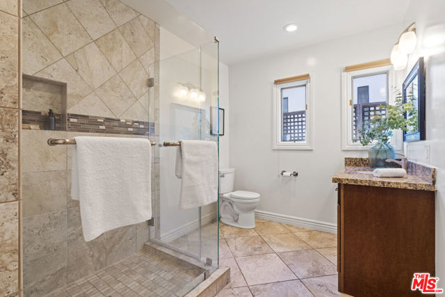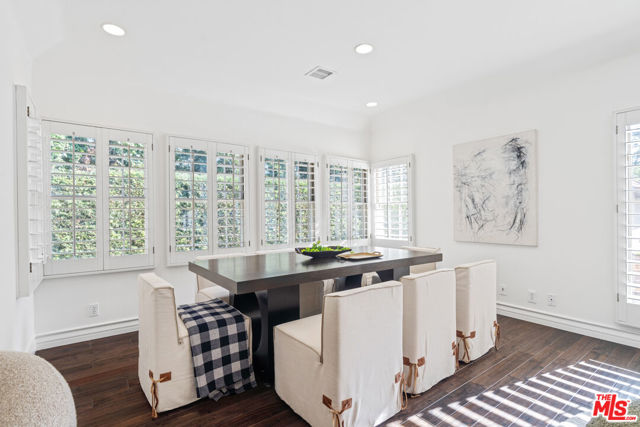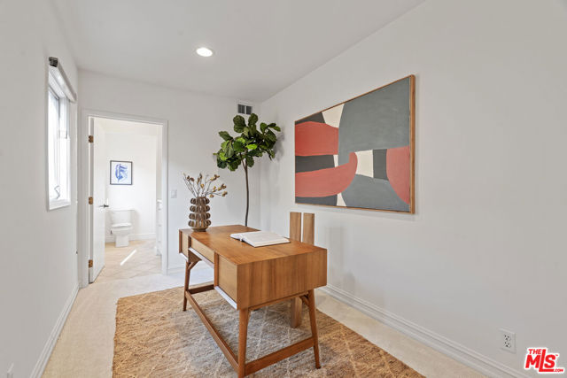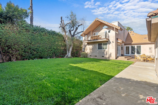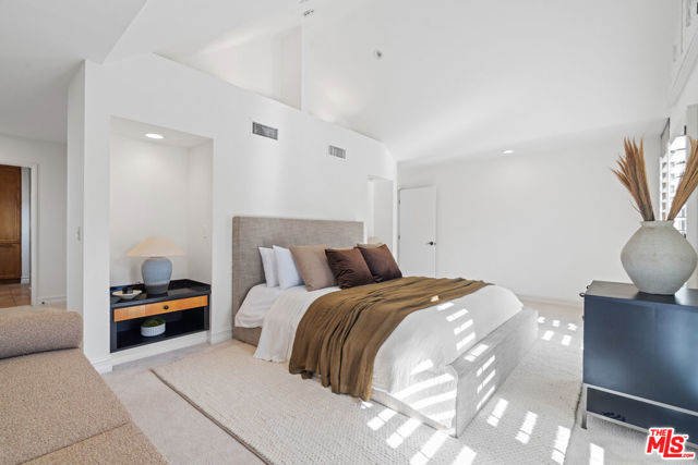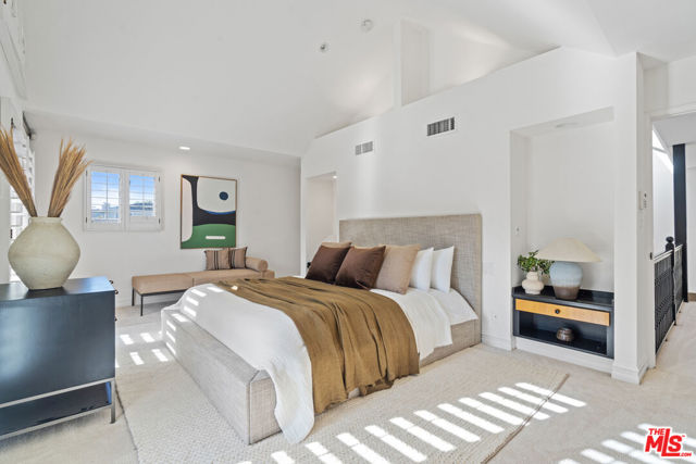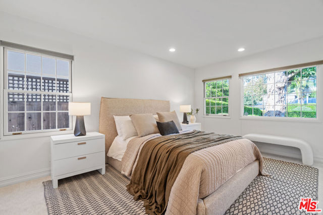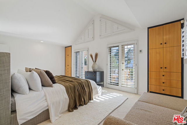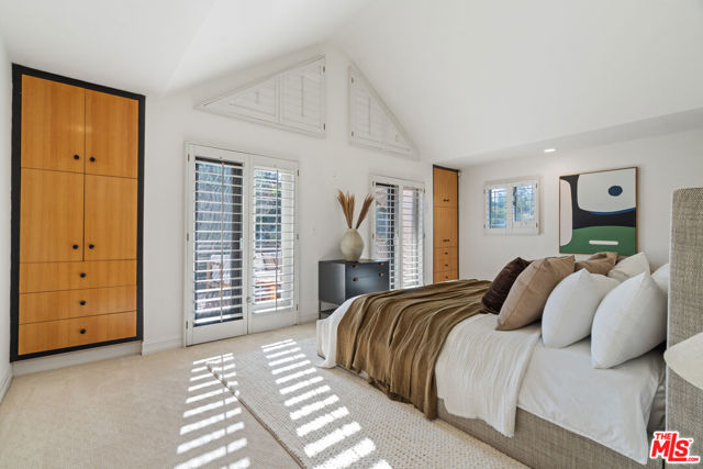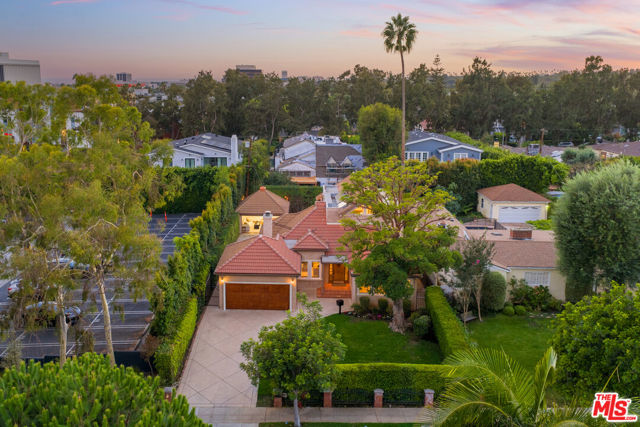 Perfect for entertaining, this stunning 4 bedroom 4 bathroom Brentwood home sits on the border of Santa Monica on a sprawling 8,984 sq ft lot with passthrough and double garages on an extra long driveway. The bright living room opens to a large grassy backyard and patio. Three en-suite bedrooms are located on the main level, while a private upstairs primary retreat features soaring A-frame ceilings, abundant natural light, a spacious balcony, dual walk-in closets, and a full bath. Additional highlights include skylights, built-ins, French doors, and a flexible second garage. An exceptional location close to Brentwood Village and the best of the Westside.
