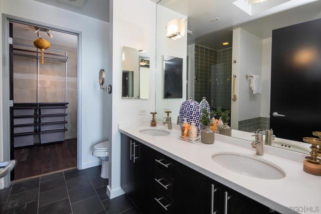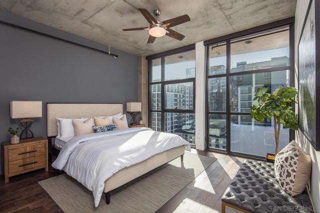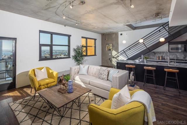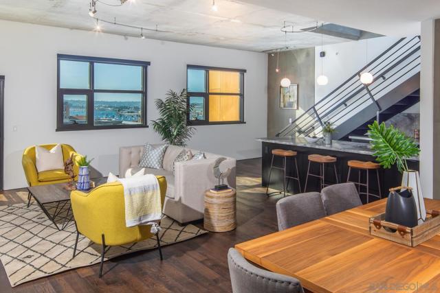 Enjoy Penthouse Living in the Heart of Little Italy at Aperture! This sophisticated residence offers an open-concept layout with contemporary finishes, blending comfort and style throughout. Facing west, this unit showcases stunning city views of Little Italy and the harbor. The main level features a modern kitchen with quartzite countertops, new appliances, and a spacious living room that opens to a private balcony ideal for enjoying sunsets or taking in Little Italy views. Upstairs, the primary bedroom has a large walk-in closet and a beautifully updated spa-like ensuite bathroom. The second bedroom and full bath, along with a full-size stacked laundry unit, den complete the upper level. Additional features include hardwood floors throughout, motorized blinds, updated lighting, and a Nest thermostat. The unit also includes two side-by-side parking spaces and an oversized private storage room for added convenience. Just outside your door, explore the best of Little Italy with its vibrant dining, shopping, and waterfront attractions. This is truly urban living at its finest, right in the center of one of San Diego’s most desirable neighborhoods! Available November 1st.