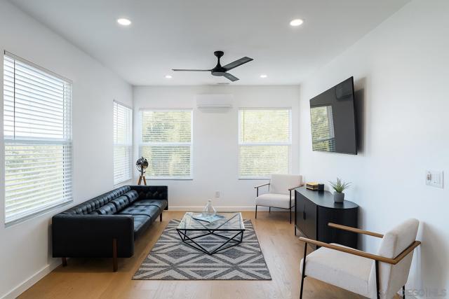 Exceptional 4-unit investment opportunity in the heart of Downtown San Diego, offering immediate rental income and long-term growth potential. This fully renovated property features a rooftop deck with 360° panoramic views of Downtown and the Coronado Bridge, accessible to all four units—perfect for entertaining or relaxing. The two lower units are 2 bed / 1 bath with private side yards, in-unit laundry, and gated assigned parking, while the two upper units are 1 bed / 1 bath, including a charming cottage-style and a modern penthouse, both with washer/dryer. Extensive upgrades include new luxury vinyl plank flooring, kitchens, baths, appliances, electrical sub-panels, ABS drain lines, tankless water heater, mini-split A/C + heat, double-pane windows, fencing, roof, and decking. A Ring security system and custom gas fireplace convey with the sale. Zoned CCPD-ER, this property allows for flexible use and future development potential—an exceptional bonus in one of San Diego’s most dynamic and high-demand areas.