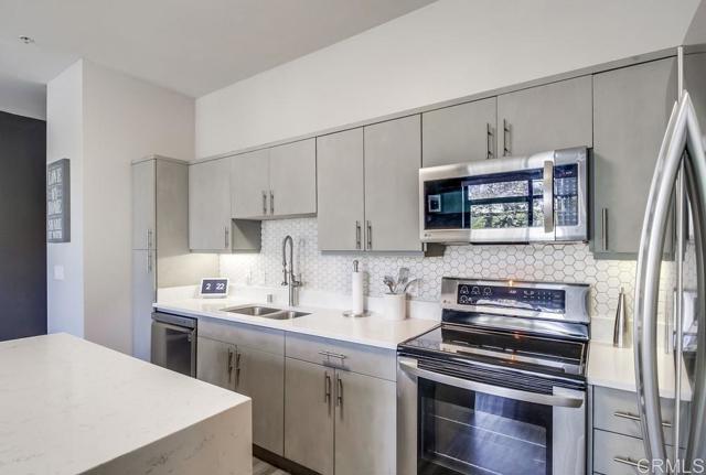 Come and view this light and bright 2 bedroom 2 bath condo located in Aloft @ Cortez Hill. Property enjoys newer LVP flooring, kitchen island, custom cabinetry and a stainless steel appliance package. Enjoy in unit laundry, central heating and air conditioning and 2 assigned parking spots. Located walking distance to Little Italy and Downtown San Diego's bars, shops and restaurants. Message today with questions or to request a tour.