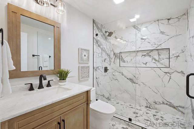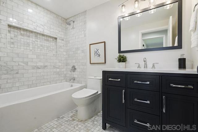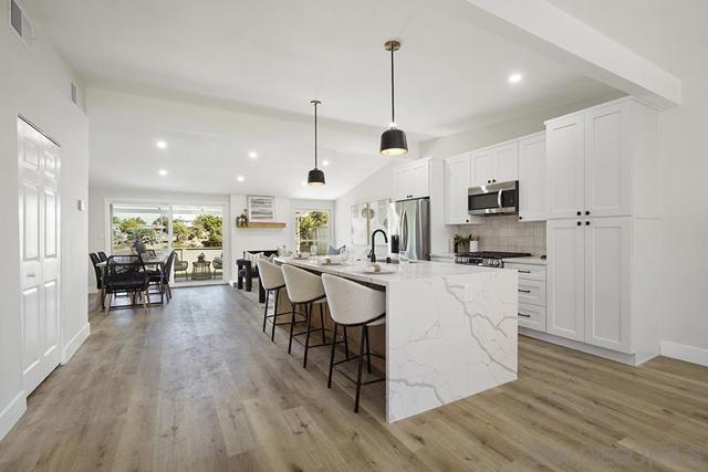 Welcome to this beautifully updated 4-bedroom, 2-bath mid-century home located in the heart of Serra Mesa. Featuring 1,524 sq. ft. of living space, this home offers an open layout filled with natural light and beautiful canyon views. The new kitchen includes shaker cabinets, quartz countertops, and stainless steel appliances, opening up to the dining and living areas—perfect for gatherings. Recent upgrades include a new HVAC system, some new windows, a new electrical panel, and luxury vinyl plank flooring throughout. Enjoy a peaceful neighborhood near Cubberley Elementary with easy access to major freeways. With a two-car garage and a private patio overlooking the canyon, this move-in ready home combines classic design with modern comfort.