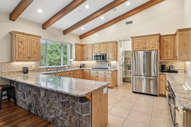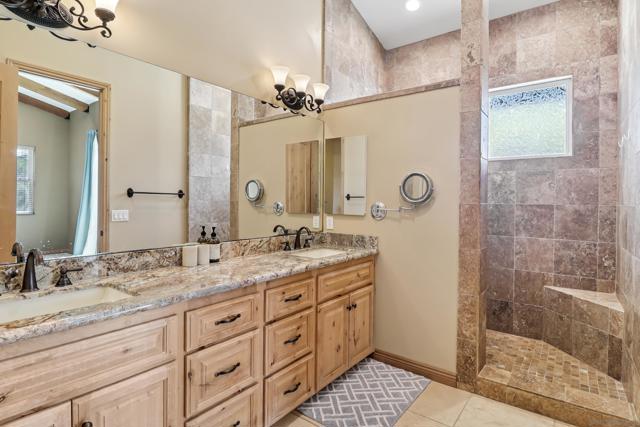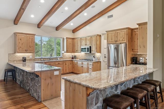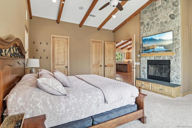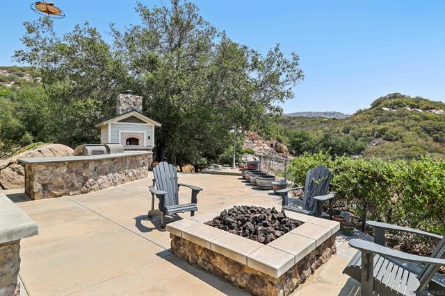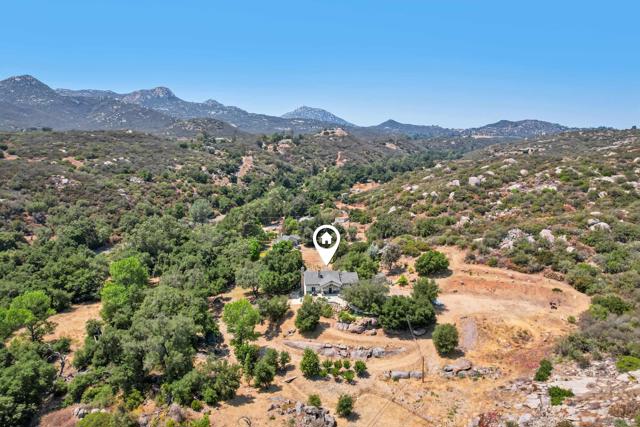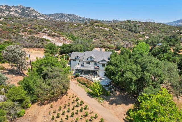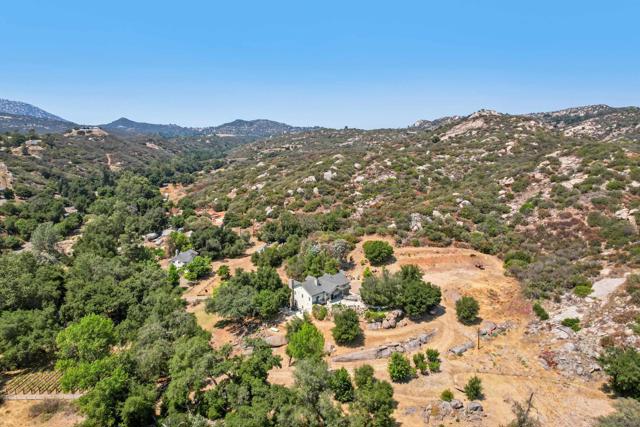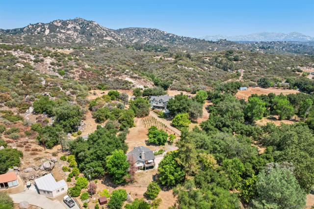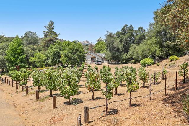 Variance granted 2-4 Units. Four Homes on 11+ Acres! Ideal for Multi-Generational Living or Investment. Welcome to Seven Meadows—a rare retreat in the rolling hills of Ramona. Framed by majestic oaks, a seasonal stream, and peaceful mountain views, this one-of-a-kind property features four residences, multiple income streams, and endless potential for multi-family living or investment. The main home is a 3BR/2BA single-level cabin-style residence with vaulted wood-beam ceilings, stone fireplace, and a gourmet kitchen with stainless appliances and knotty pine cabinetry. The primary suite opens to an outdoor entertaining area with a BBQ island, pizza oven, firepit, and spa. Downstairs, you will find the 2-car garage, RV Garage and storage rooms, plus the attached ADU: a 1BR/1BA apartment with its own entrance, full size kitchen and patio. A second home includes two separate units—a 3BR/2BA upstairs and a 2BR/1BA below—totaling approx. 2,900 SF with current rental income of over $5,200/month. Tenants are month-to-month, allowing flexibility for investors or extended family. The property showcases three vineyards with approx. 500 vines (Zinfandel, Tempranillo, Syrah, Grenache & Mourvèdre) previously producing 3,000 lbs of grapes annually, irrigated by a private well. Additional highlights include 125 fruit trees, chicken coop, multiple sheds, and a cleared area ready for horses, livestock, or future projects. An RV pad with hookups (previously rented for $1,500/mo) and a nearly complete 1BR AirBnB unit in the oaks offer even more income opportunity. Convenient west-Ramona location.