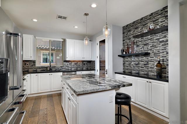 Fresh Pricing! Welcome to this beautifully upgraded 4-bedroom, 3.5-bathroom home nestled in the sought-after gated community of 4S Ranch, this home offers the perfect blend of comfort, style, and convenience. Step into the designer gourmet kitchen featuring stainless steel appliances, a custom built-in microwave, and elegant high end finishes throughout, custom floating shelves and backsplashes. The spacious open-concept layout includes a bright living area with a modern fireplace set on a custom stacked stone finished backdrop. Fresh new paint, new carpet and custom engineered woodplank floors throughout, multiple balconies provide multiple intimate sitting areas, Three full bathrooms including a private ensuite guest bedroom and an additional powder room creates an ideal floorplan for families or guests, additionally featuring a convenient interior laundry room. Enjoy the security of a 2-car attached garage and the benefits of a newer, well-maintained complex that includes access to a gorgeous community pool. This is a rare opportunity to own a larger townhome in one of San Diego’s most desirable school districts, just blocks from Del Norte High School. Don't Miss This One! Interior laundry, 2 car garage, located near parking, gorgeous community pool.