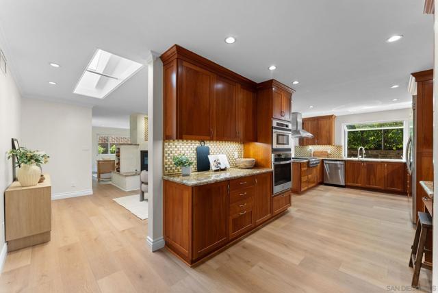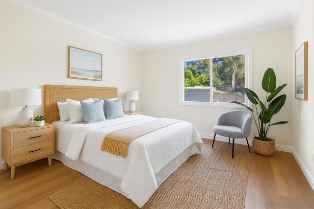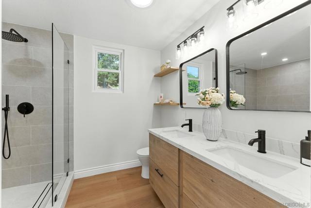 Nestled on a peaceful street just a few steps from Western Hills Park, 2261 Garfield Road blends serene surroundings with elevated craftsmanship rarely seen in Bay Park homes. Every inch of this residence showcases owner-quality finishes — not the quick-turn materials typical of standard flips. Step inside to discover new LVP flooring, 6-inch baseboards, and a thoughtfully curated layout designed for comfort and style. The home features dual primary suites, each with its own retreat-like ambiance. The upstairs suite offers expansive views of Western Hills Park and Mount Soledad, creating a daily reminder of the tranquility that defines this neighborhood. The luxury wet room steals the show — an indulgent space featuring a soaking tub and spa-inspired shower, perfect for unwinding after a long day. Outside, lush landscaping surrounds the home, with fruit trees and flowing waterfall enhanced by dual irrigation systems that can be controlled remotely for effortless maintenance. An outdoor office provides a private escape for remote work or creative focus, while a separate playroom offers additional versatility. The new epoxy-finished garage floor reflects the same meticulous attention to detail found throughout the property. Located minutes from top-rated restaurants, shopping, and local favorites, this home strikes the perfect balance between quiet comfort and coastal convenience. Experience refined living in one of Bay Park’s most peaceful pockets — where every finish, feature, and view has been designed to feel like home.