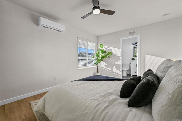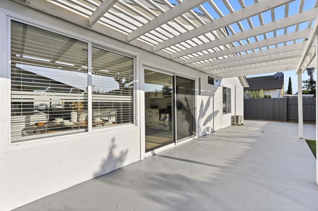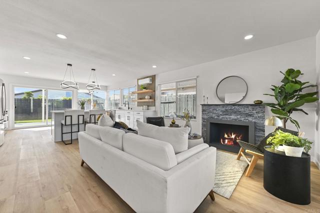 Fully renovated home in north Mira Mesa featuring an open-concept living space filled with natural light from abundant windows. The spacious kitchen offers modern white cabinetry, an island, ample counter space, and brand-new stainless steel appliances. A huge slider off the kitchen opens to a private backyard with a large patio, new trellis, and refreshed landscaping, perfect for entertaining or relaxing outdoors. Inside, enjoy modern finishes throughout including new LVP flooring and baseboards, new doors, light fixtures, ceiling fans, and mirrored closets in all bedrooms. The living room features a stylish modern fireplace with new tile surround, creating a warm and inviting focal point. Additional upgrades include new kitchen cabinets, new roof, new garage window, new exterior lighting, and a freshly painted interior and exterior. The fully remodeled primary bathrooms include professional waterproofing and elegant finishes. Comfort is ensured year-round with new AC mini splits in the living room and primary bedroom, with enough capacity to cool the entire home. This bright, modern home is truly move-in ready.