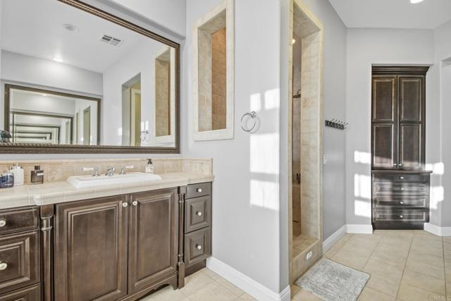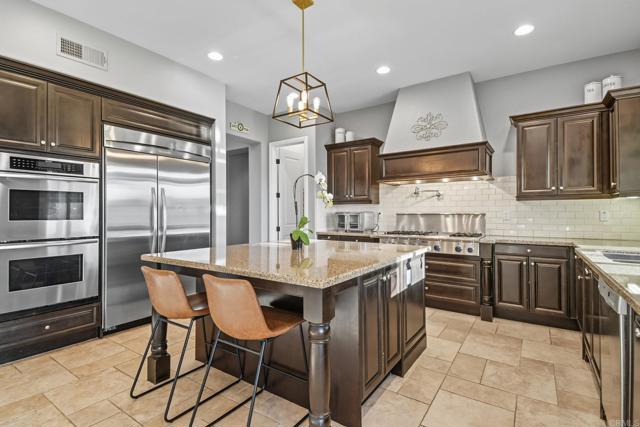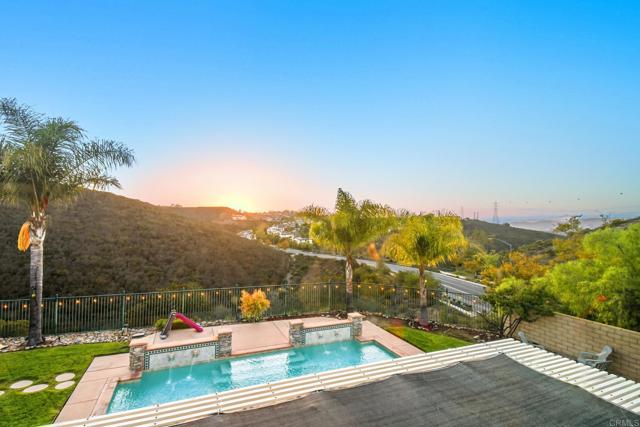 Luxury Stonebridge Estates Retreat | Premium Corner View Lot Experience resort-style living in this stunning Stonebridge Estates home, perfectly positioned on a premium corner lotwith no neighbors to the side or behind, offering unmatched privacy and breathtaking panoramic open-space views. Step inside to soaring ceilings, an abundance of light throughout, elegant hardwood and stone flooring, and an abundance of natural light throughout. The gourmet kitchen boasts Thermador appliances, a built-in refrigerator, and a commercial-grade stove, all overlooking a spacious family room—perfect for entertaining or relaxed everyday living. This exceptional estate features dual main-level bedrooms, including a grand primary suite with direct backyard access, a spa-inspired bathroom with dual vanities, jet soaking tub, stone shower, and an ultra-spacious walk-in closet. The second downstairs suite offers a walk-in closet and private full bath—ideal for guests or multi-generational living. Upstairs, you’ll find four additional bedrooms. One includes a private en-suite bath, walk-in closet, and retreat spacethat can serve as an office, playroom, or dressing area. Two other bedrooms enjoy walk-in closets and bright, open layouts. The fourth bedroom is extra large, with spectacular panoramic views—perfect as a loft, media room, or second grand suite. A formal dining room opens to a charming courtyard with fountain, creating an ideal setting for gatherings. Adjacent to the inviting living room is an elegant study with fireplace and French doors leading to the front patio. The resort-style backyard is an entertainer’s dream, featuring a designer pool, lush landscaping, and an abundance of fruit trees—including pomegranate, peaches, donut peaches, lemons, avocados, persimmons, loquat, and a flourishing grapevine. Enjoy sunset views and outdoor dining in total serenity. Additional Highlights: - Paid-off whole-house and pool solar systems - Nest smart thermostat and remote-controlled ceiling fans - Crown molding and designer finishes throughout - Three-car garage, with third bay converted into maid’s quarters - Wine cellar in dining area - UV-protective window film throughout - Fire-safety backyard sprinkler irrigation system Located within the award-winning Poway Unified School District, and just a short stroll to the community park and playground, this home offers the perfect blend of elegance, comfort, and tranquility. This is more than a home—it’s a lifestyle in one of San Diego’s most prestigious neighborhoods.