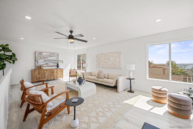 Panoramic Coastal Views • Modern Design • Legal ADU Income Opportunity Welcome to your slice of San Diego coastal living—without the crowds or chaos of the beach! This beautifully renovated 2-bedroom, 2-bath main home (approx. 1,326 sq. ft.) plus a newly constructed, fully permitted 1-bedroom, 1-bath ADU (approx. 429 sq. ft.) offer a combined total of roughly 1,755 sq. ft. of modern living space with sweeping sit-down panoramic views of the Pacific Ocean, Mission Bay, and nightly SeaWorld fireworks from nearly every angle. The main home showcases designer finishes, an open-concept layout, and abundant natural light. The elevated site delivers breathtaking sunsets and sparkling water views from the kitchen, living room, and expansive front deck. Enjoy morning coffee or sunset dining on the covered patio with ceiling fan and low-maintenance landscaping. The detached ADU features its own private deck, panoramic views, and dedicated parking—ideal for guests, extended family, or rental income. Walk to a top-rated elementary school and reach Pacific Beach, Mission Bay Park, and popular restaurants in minutes. You’re walking distance to a top-rated elementary school and just minutes from Pacific Beach, Mission Bay Park, trendy restaurants, and coffee shops. Experience the beach lifestyle without the beach crowds where ocean breezes, panoramic vistas, and modern comfort meet elevated privacy. While the home’s hillside setting offers incredible views and privacy, it does come with a few stairs but the reward is worth every step!!