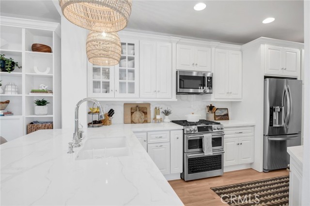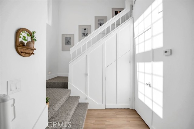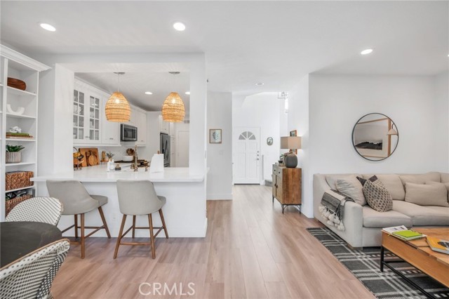 Welcome to 135 Mayfair, a bright and thoughtfully upgraded townhome in the highly sought-after Cantora community—just steps from Springdale Park and Aliso Viejo Town Center. This inviting 3-bedroom, 2.5-bath residence offers a comfortable open floor plan filled with natural light and tasteful updates throughout. The living area features a custom fireplace, built-in dining shelving, and seamless flow into the remodeled kitchen with quartz countertops, designer lighting, stainless-steel appliances, and custom cabinetry. Upstairs, the primary suite boasts vaulted ceilings and a beautifully updated ensuite, while two additional bedrooms provide the perfect setup for guests, or a home office. Enjoy a private backyard surrounded by mature trees, custom stonework, and low-maintenance landscaping—ideal for outdoor dining or relaxing in the shade. Recent improvements include a renovated kitchen and bathrooms, full PEX re-pipe, new water heater, upgraded flooring, dual-pane windows, electric blackout blinds, and new ceiling fans. The attached two-car finished garage features overhead storage, a 220 V EV outlet, and an extended driveway for extra parking. Residents of Cantora enjoy a heated pool and year-round spa, lush greenbelts, and peaceful trail paths. Conveniently located minutes from Laguna Beach, Dana Point, and Irvine, with top-rated schools and easy access to the 73 Toll Road, this home combines style, comfort, and an unbeatable location.
