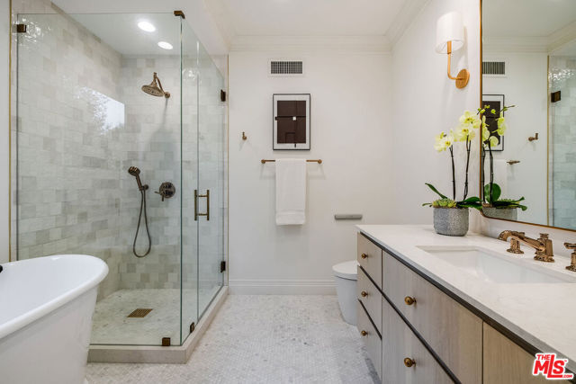 Exceptional 5 bedroom, 5.5 bathroom luxury estate located in the exclusive, guard-gated community of Hidden Valley Estates. This architectural masterpiece offers apx. 6,780 sq.ft. of expertly designed living space on an expansive apx. 1.10 acre lot. Fully remodeled and designer-finished in 2021, every detail has been thoughtfully curated to create a contemporary sanctuary of style and comfort. Inside, an expansive open kitchen and family room provide the perfect setting for modern living and entertaining. The chef's kitchen features top-of-the-line appliances, custom cabinetry, and stunning countertops, while the adjoining family room is bathed in natural light, offering a relaxed yet sophisticated ambiance. Formal living and dining rooms set the stage for elegant gatherings, and a dedicated media/game room with full bar ensures endless opportunities for leisure. The resort-style backyard is a true highlight, boasting a sparkling pool, cozy fire pit, and an outdoor kitchen ideal for dining al fresco. A state-of-the-art outdoor home theater, complete with surround sound, audio, and WiFi capability, creates the perfect venue for movie nights under the stars. Equipped with advanced smart home technology, the residence includes a Clare Home security system with glass-break sensors, Hik-Connect and Ring surveillance cameras with facial recognition and intercom doorbell, and a Lutron home automation system with dimmer switches and customizable lighting. Every element, from the hand-selected materials to the designer lighting, exemplifies refined craftsmanship and modern luxury. With abundant space for both relaxation and entertainment, this remarkable estate offers an unparalleled blend of sophistication, privacy, and comfort.