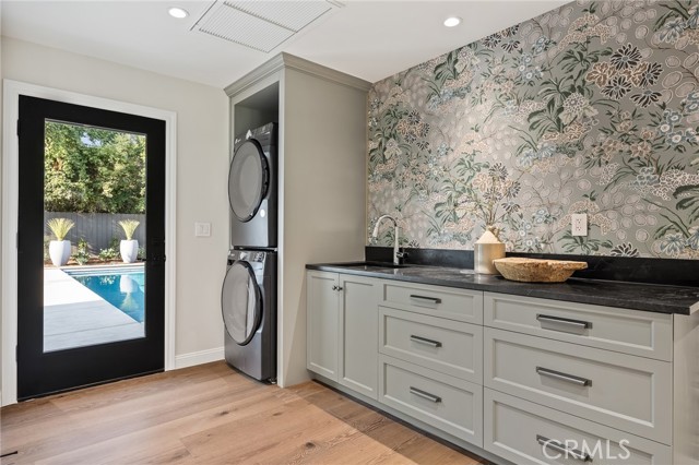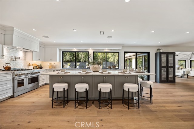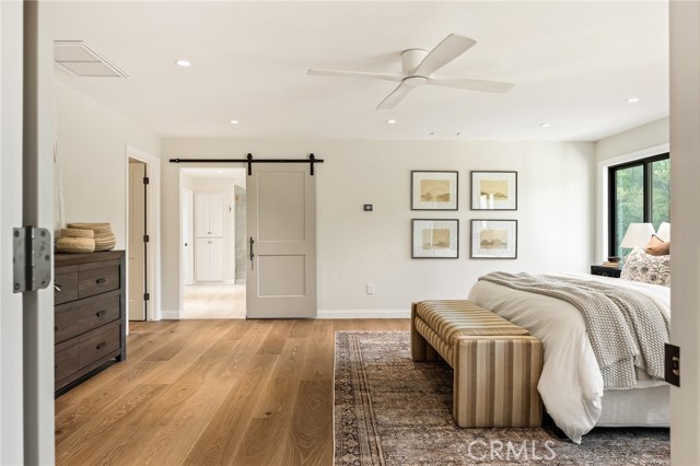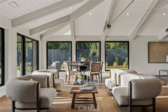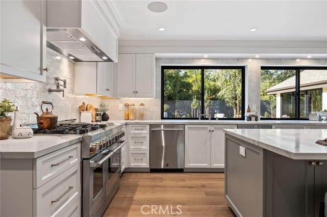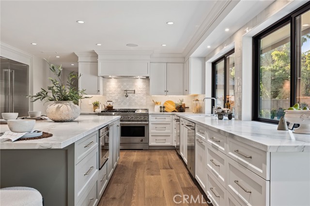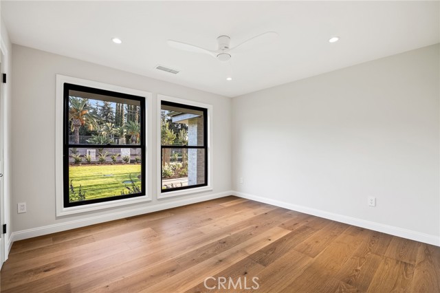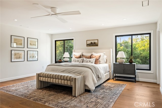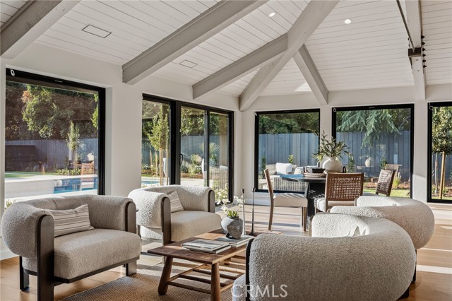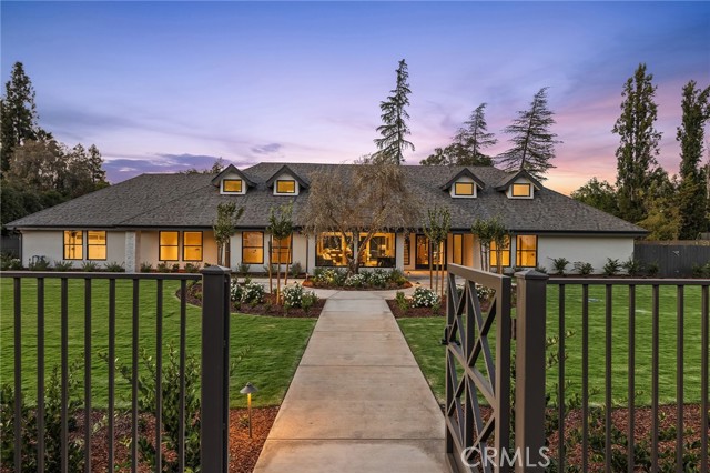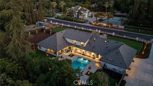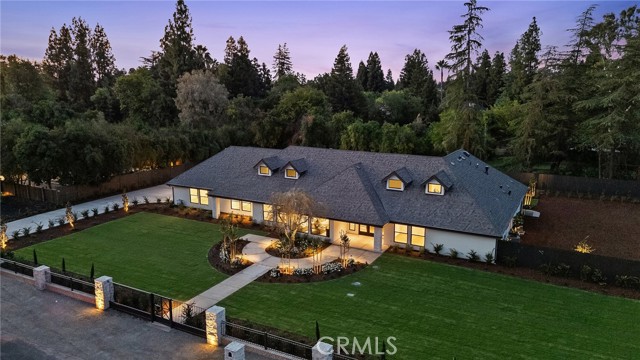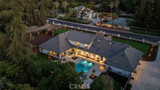 Behind elegant gates in the prestigious Van Ness corridor lies an extraordinary estate that redefines sophisticated living on a perfectly sized .88-acre lot that's oversized yet not overwhelming. This meticulously crafted residence delivers discerning buyers who value their time the ultimate in turn-key luxury living, eliminating the stress of remodeling or building a custom home. No detail has been overlooked in this architectural symphony, featuring six exquisite bedrooms including a convenient main-floor guest suite that ensures comfort for visitors and multi-generational living alike. Striking black fiberglass Andersen windows punctuate the refined acrylic stucco exterior enhanced with distinctive brick and stone accents, while wide-plank French oak floors flow throughout sophisticated living spaces bathed in amazing natural light throughout all seasons. The living room features a stunning Heat-N-Glo 72-inch linear fireplace as its centerpiece. The gourmet kitchen stands as a culinary masterpiece with Jenn-Air professional appliances including column refrigerator and freezer, drawer microwave, dual dishwashers, and impressive 48-inch range with griddle functionality. Quartzite and soapstone countertops provide both beauty and durability. Climate control reaches new efficiency heights with state-of-the-art Lennox variable speed, whisper-quiet heat pump system, complemented by dual Navien tankless water heaters featuring recirculating pumps. The home features R-49 attic insulation plus insulated roof deck, creating exceptional comfort while significantly reducing cost of living through superior energy efficiency. Three strategically placed laundry facilities, including upstairs Bosch heat pump washer and dryer positioned within the primary suite's luggage room, elevate convenience. The isolated primary bedroom with private loft creates an impressive nearly 1,300 square foot sanctuary. The primary bathroom features dual commodes with Kohler tankless bidet toilets. Step outside to discover a pristine Pebble pool with protective cover, surrounded by landscape design crafted by renowned landscape architect Bob Truxell. The generous lot opens remarkable opportunities for personalization, whether envisioning private orchard, concealed ground-mount solar, or potential shop and accessory dwelling unit development. A separate gated entrance provides secure recreational vehicle storage. This is luxury living redefined.