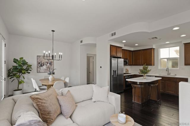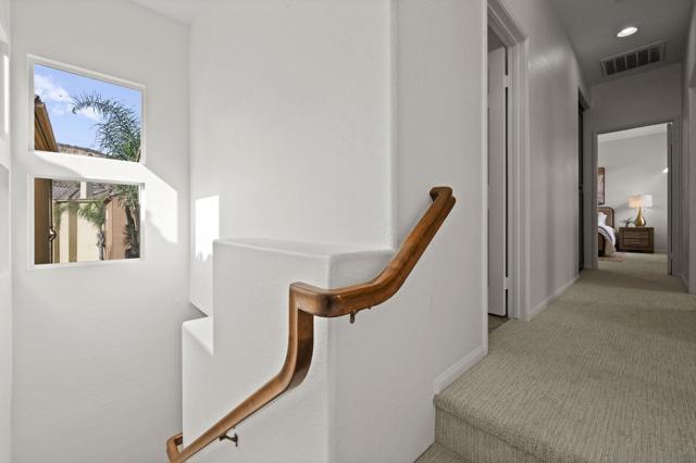 Situated in the gated Escala community, this Italian-inspired detached Villas home offers style, comfort, and modern efficiency. The interior features new quartz kitchen counters, new carpet, and wood floors in the main living areas, all complemented by large windows that fill the home with natural light. Recent upgrades include solar (leased) and a newer HVAC system, ensuring year-round comfort and energy savings. A private yard area provides the ideal outdoor retreat. Enjoy resort-style amenities including a pool, spa, fitness center, playground, and tennis courts, all in a centrally located in Mission Valley close to shopping, dining, beaches and major freeways.
