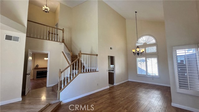 Bright and spacious 4-bedroom, 3-bath home located on a quiet cul-de-sac, 2mins drive to the Chaffey College, and 6mins drive to the Los Osos High School. South-facing entry brings abundant natural light. Open floor plan with high ceilings, hardwood floors, and a cozy living room with fireplace. All bedrooms upstairs, including a large primary suite with balcony and dual sinks. Private backyard with patio, perfect for relaxing or entertaining. Three-car garage and access to community pool, spa, and clubhouse. Convenient location and move-in ready!