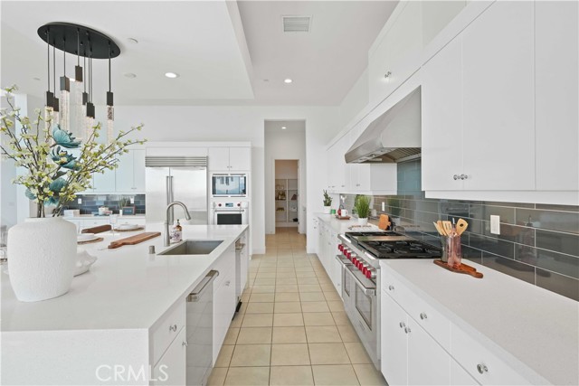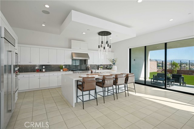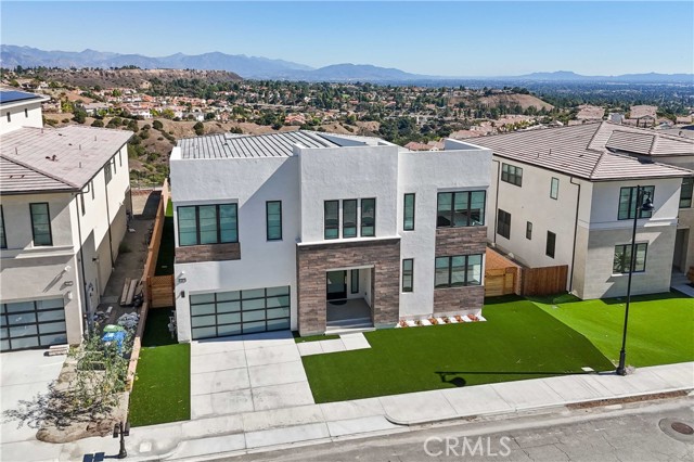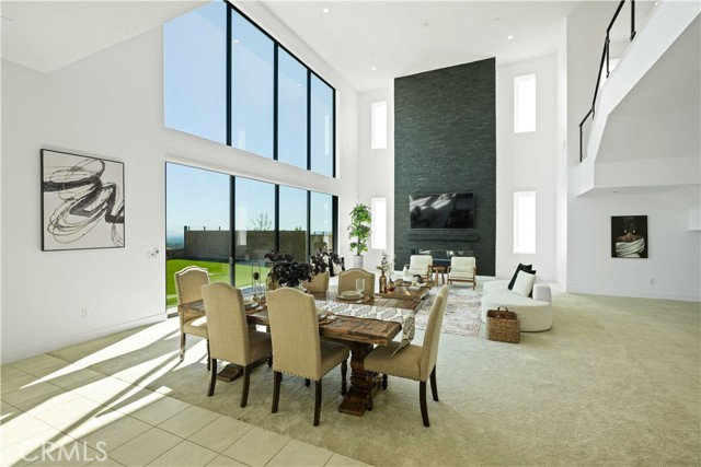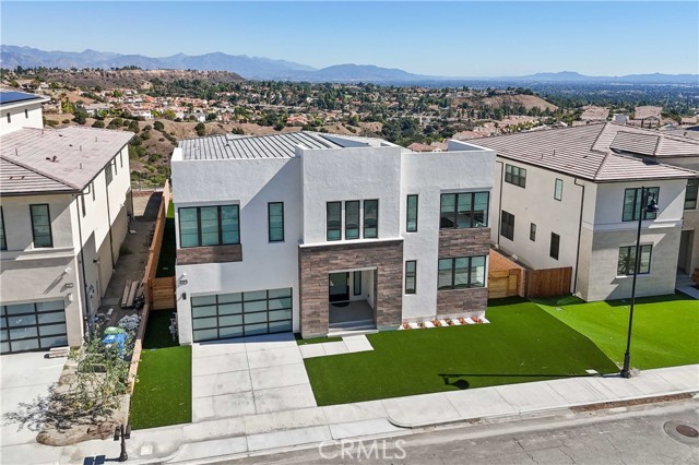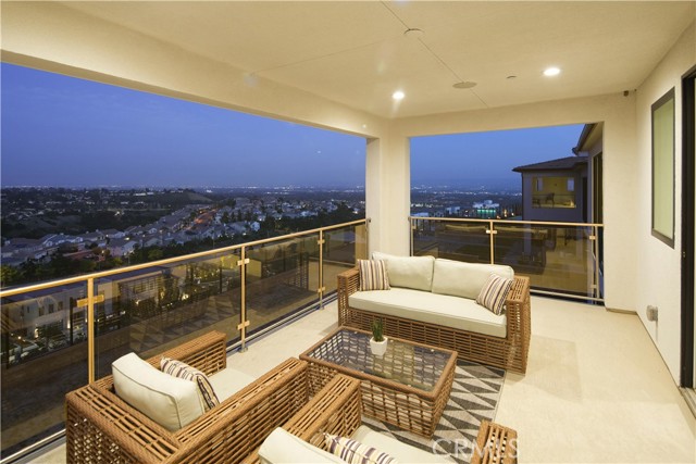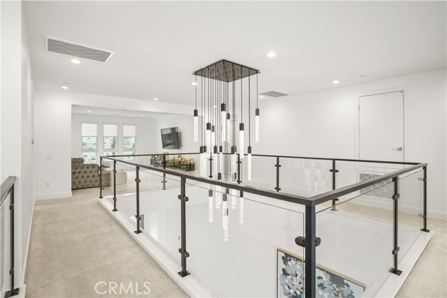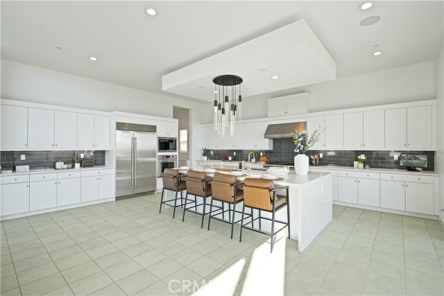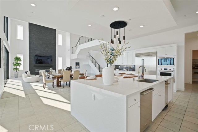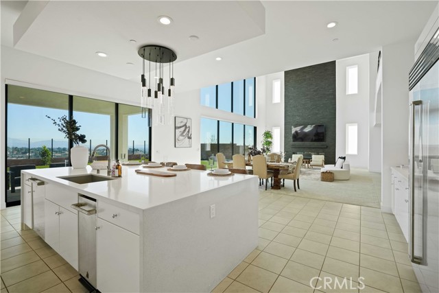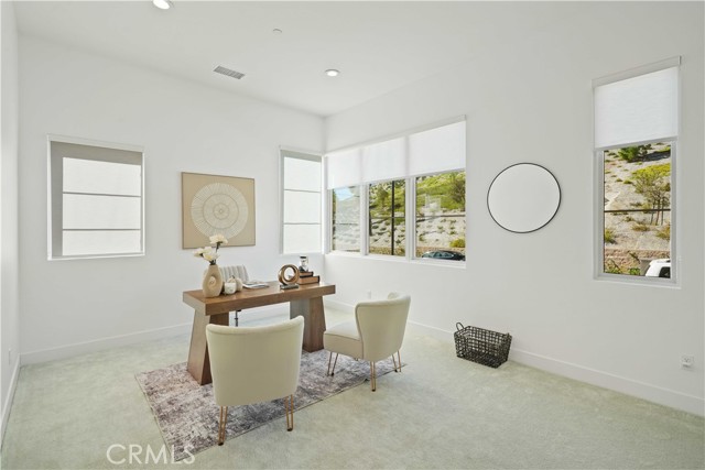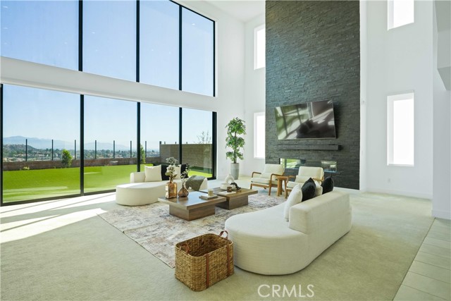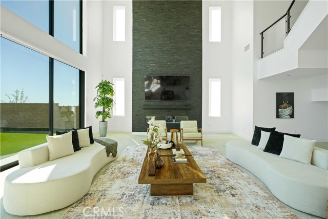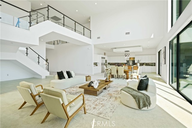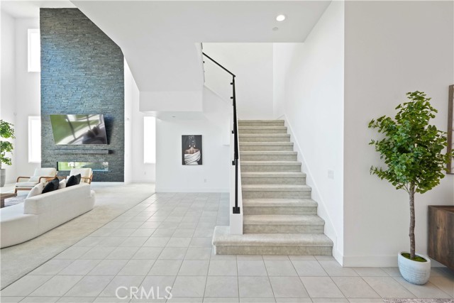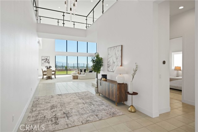 Welcome to remarkable luxury two-story residence nestled in the prestigious guard-gated Westcliffe community of Porter Ranch. This architectural masterpiece seamlessly blends practicality with timeless elegance, offering breathtaking panoramic views from every level—captivating from sunrise to sunset. The home’s grand open-concept design is highlighted by soaring ceilings over 20 feet high and expansive windows that flood the interior with natural light while framing stunning vistas. Designed with the highest level of craftsmanship and care, this home delivers an unrivaled living experience. The main level features a private en-suite guest bedroom, a dedicated home office, and a stylish powder room. The gourmet kitchen is a chef’s dream, equipped with a 48” Sub-Zero refrigerator, upgraded Wolf appliances, Quartz countertops, a waterfall island, walk-in pantry, and a designer tile backsplash.The kitchen opens to an elegantly designed covered patio, offering a seamless indoor-outdoor flow that is ideal for sophisticated entertaining and relaxed everyday living. The spacious living room is anchored by a sleek, upgraded linear fireplace with black tile detailing, creating a sophisticated focal point. Smart home features include automated window coverings, paid-off solar panels, and energy-efficient double-pane windows. A versatile upstairs loft offers the perfect space for relaxation or entertainment. The expansive primary suite provides a private retreat complete with a romantic sitting area, surround sound system, and a covered balcony showcasing unobstructed panoramic views.Enjoy the beautifully landscaped backyard and brand-new turf, perfectly designed to showcase the stunning panoramic views. Additional highlights include a dramatic glass stair handrail, beautifully curated designer finishes, and high-end smart home automation throughout. Ideally located in the North Valley, this home is just minutes from award-winning schools such as Porter Ranch Community School (K–8) and Sierra Canyon, upscale shopping and dining at The Vineyards, the new 50-acre Porter Ranch Community Park, and offers convenient access to the 118 freeway. This residence is the ultimate blend of luxury, innovation, and location in one of the San Fernando Valley’s most coveted neighborhoods.