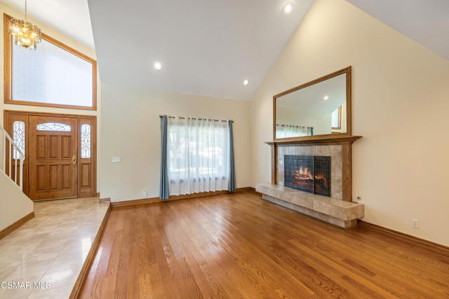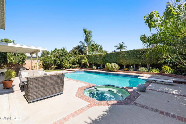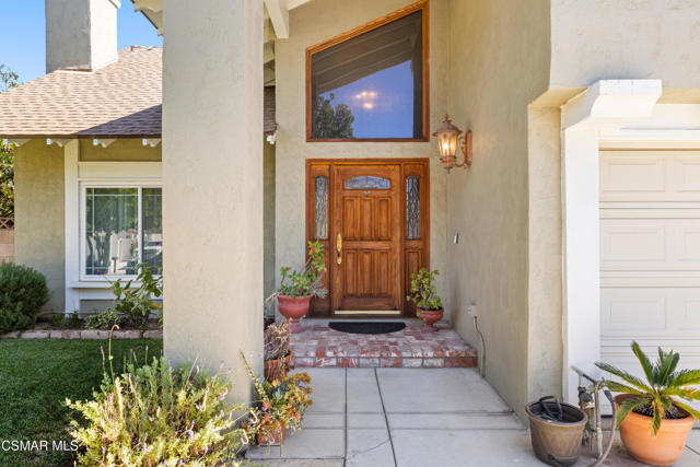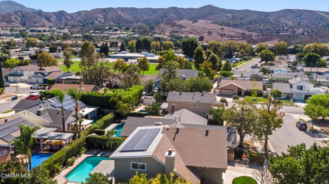 Just in time for the Holidays, don't miss this fabulous 2,115 sq ft, two-story pool home, nestled in the highly desirable Oakcrest neighborhood in East Simi Valley.Step through the beautiful oak and leaded glass door entry, into an elegant foyer, which sets the tone for generous size rooms and, picturesque views from almost every window!An impressive formal living room with vaulted ceilings, recessed lighting, warm hardwood floors, and a custom marble fireplace, flows through to an open- plan kitchen dining area, with tile flooring and a family room attached, it's the perfect place to entertain family and friends! Beautiful picture windows and sliding doors open to the lush private backyard oasis, with a sparkling pool & spa, covered patio area, and a wonderful array of fruit trees including; pomegranate, oranges, lemon, lime, passion fruit, grape vines and blackberry vines!Remodeled kitchen, with granite counters, custom backsplash, stainless steel appliances, and recessed lighting throughout , plus a pass-through window for easy entertaining in your beautiful backyard! A large ground floor powder room, and lots of storage space, are the perfect addition to this home's lower level. The upper level offers ; 4 bedrooms and 2 bathrooms, with stunning views of the Simi hillsides from every room! The impressively large primary suite has room to lounge and take in those views, with ensuite bathroom and large closets too!Additional features include; Energy efficient paid off TESLA SOLAR, newer roof, newer HVAC, newer Anlin dual pane windows throughout, new raised panel doors, fresh paint throughout the interior,recently painted exterior...and so much more!Large 2 car garage, RV parking, and mature landscaping front and back.Just minutes from award winning schools, parks, shopping, dining and easy access to the 118 fwy, this home has everything you've been looking for. Quite simply a MUST SEE!