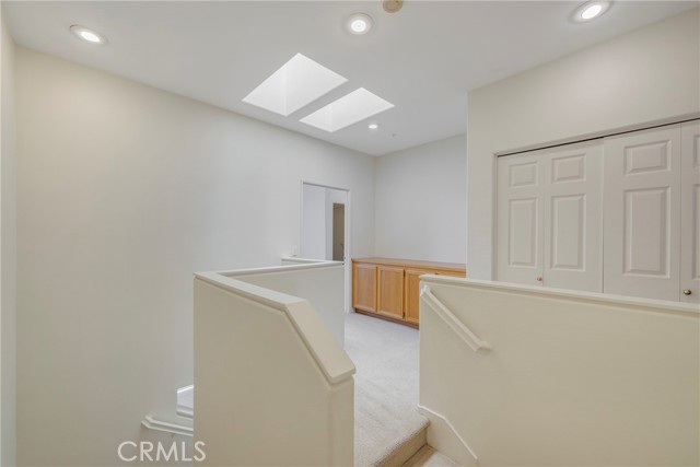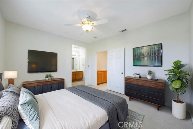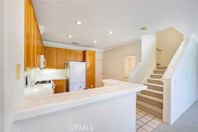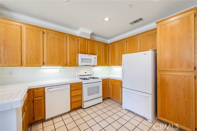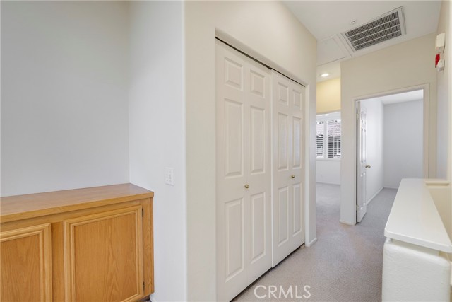 This 3 bedroom condo in the gated community of Cambridge has been newly painted and carpeted as well as having vinyl plank installed in the upstairs bathrooms. All other surfaces are tile. From the gated patio you enter into the living room that is separated from the kitchen by a breakfast bar. There is a half bath on this level that is adjacent to the attached 2 car garage and plenty of storage. Upstairs are three bedrooms, the primary with it's ensuite and walk-in closet and two others that share a full bath in the hallway. The second bedroom also has a walk in closet and the third bedroom could serve as an office as there are no closet doors, but a rod could be installed to create that space. Upstairs is a laundry closet next to an expansive linen cabinet. All room have plantation shutters. There is plenty of storage in this bright & roomy home that is close to schools, shopping and freeways.