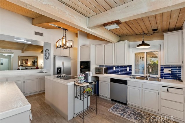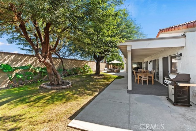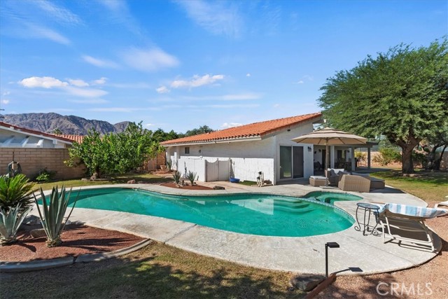 Enjoy resort-style living in this beautifully furnished 3-bedroom, 2-bath home with a private pool and spacious yard, perfectly situated at the end of a quiet cul-de-sac in the desirable La Quinta Country Club Montero Estates. Offering 2,168 square feet of living space, this single-level home welcomes you with an open floor plan, exposed beam vaulted ceilings, and wood-look flooring throughout the main living areas. The great room flows effortlessly into the dining area and remodeled kitchen, featuring crisp white cabinetry, striking blue subway tile backsplash, and stainless steel appliances — ideal for entertaining or relaxing after a day on the golf course. The primary suite offers backyard and pool access, a walk-in closet, and a beautifully updated spa-inspired bathroom with dual sinks, a soaking tub, and a separate glass-enclosed shower. Two guest bedrooms are equally inviting, each thoughtfully furnished for comfort. Step outside to your own private retreat — a sparkling pool and spa, covered patio with outdoor seating, and mature landscaping that offers both beauty and privacy. Just beyond the backyard, pickleball enthusiasts will love having the community court right next door!Located in one of La Quinta’s most sought-after communities, this home is minutes from Old Town La Quinta, dining, golf, shopping, and hiking trails. Available turnkey furnished for seasonal or long-term lease. Experience the best of desert living in a peaceful, elegant setting.