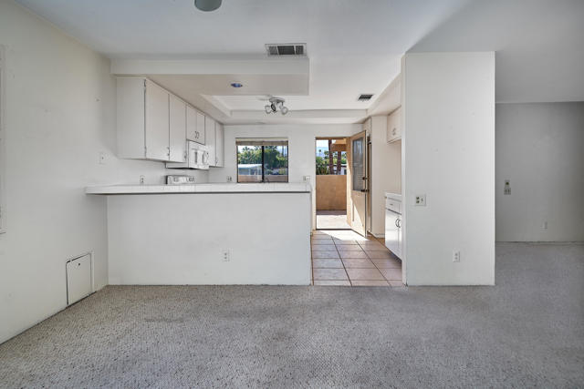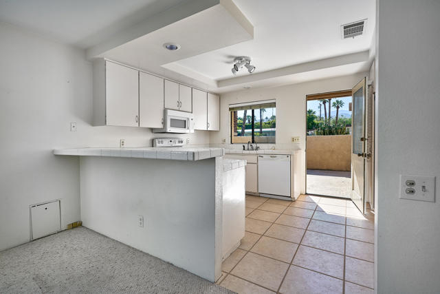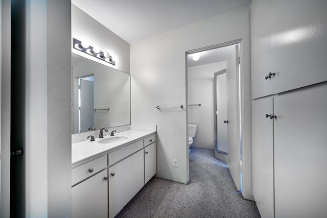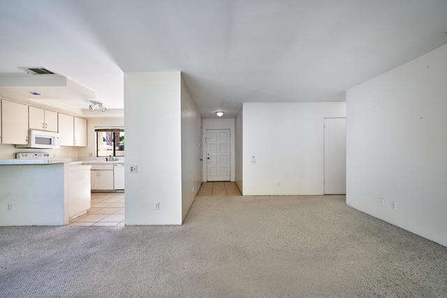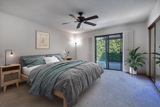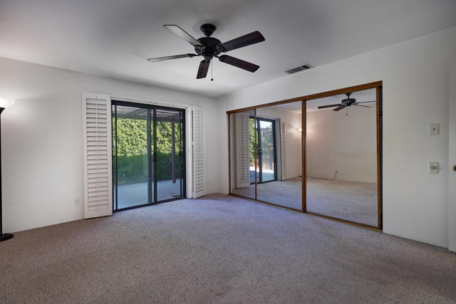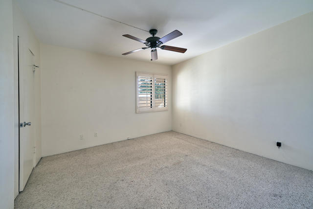Charming single-family home in South Palm Desert just off El Paseo! This residence is beautifully maintained and in move-in ready condition with newer carpeting throughout. A large great room with gas log fireplace and a formal dining area have sliders to the large, shaded back patio with barbecue. Opening to the great room is the freshly repainted kitchen with breakfast bar, plenty of cabinetry, and overlooking the sunny front morning patio with mountain views. The primary ensuite bedroom has large, mirrored closet and bath while the guest bedroom and bath are bright and airy. There are custom plantation shutters and ceiling fans. The low maintenance yard features rock landscaping. A two-car garage with remote control, washer/dryer hookups, and direct access to the house complete the premises. Non-smokers please and a minimum of one-year lease. Great location and great price! Note: Some photos have been virtually staged with furnishings.