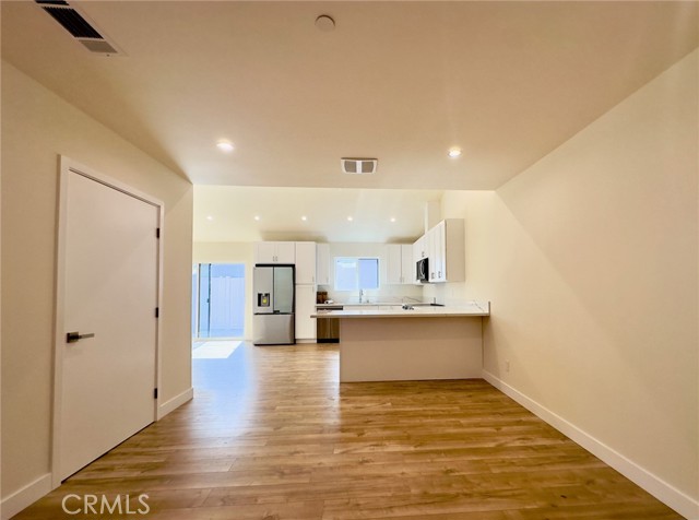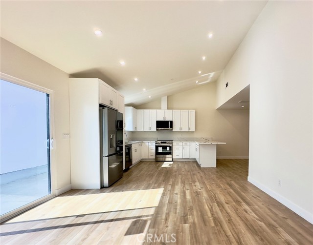 Welcome to your beautiful brand-new home, featuring 3 bedrooms, 2.5 bathrooms, and 1,200 sq. ft. of modern living space. You’ll be the first family to enjoy this stunning new construction! This home offers an open-concept living room with high vaulted ceilings, laminated floors, and recessed lighting throughout. The modern kitchen is equipped with quartz countertops and stainless steel appliances, making it perfect for cooking and entertaining. Enjoy ultimate comfort with central A/C, in-unit washer and dryer, and solar panels that significantly reduce your utility costs. The property features a private entrance, a small private yard, and dedicated parking with space for two cars in a large driveway. Located in a quiet, clean, and desirable neighborhood, this home offers both privacy and convenience. GREAT POTENTIAL for boarding care with its oversized doors and hallway.