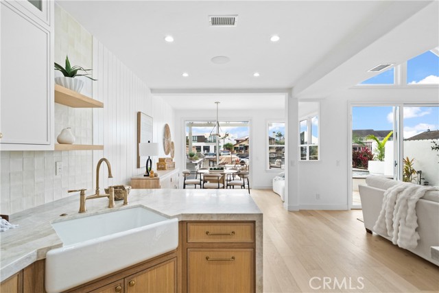 Experience elegant coastal living in the heart of Huntington Beach's prestigious Seagate community at 16214 Bimini Lane. This beautifully updated home, completed in 2025, offers 5 spacious bedrooms and 3 luxurious bathrooms, thoughtfully designed with two bedrooms on the main floor and a serene master suite upstairs. Step inside to discover engineered hardwood floors and custom white oak and painted micro shaker cabinetry. The gourmet kitchen is a chef’s delight with Taj Mahal countertops, a 6-burner stove, Bosch panel-ready dishwasher, and a stunning cast iron farmhouse sink with a Brizo faucet. The laundry room boasts exquisite Taja Perla porcelain countertops, while the bathrooms showcase Bedrosians honed marble floors, shower walls, backsplashes, and elegant tile work extending to the BBQ and jacuzzi areas. Cozy up by the custom Arto brick fireplace in the great room, equipped with a Samsung 85” Smart TV and Apple TV for the ultimate entertainment experience. Step outside to your private jacuzzi and enjoy exclusive access to two community pools and two beautifully appointed clubhouses. For water enthusiasts, the property features a 30-foot boat dock with additional space for kayaks, with seamless access to the harbor and ocean beyond. This home is truly the crown jewel of Seagate—where modern luxury meets coastal charm. Don’t miss the opportunity to own the most stunning residence in this sought-after waterfront enclave. Seagate residents enjoy unmatched amenities including tennis courts, community pools, clubhouses, and direct harbor access, perfect for an active, resort-style lifestyle just minutes from the beach and vibrant Huntington Beach dining and shops. 16214 Bimini Lane is more than a home—it’s your personal coastal retreat.