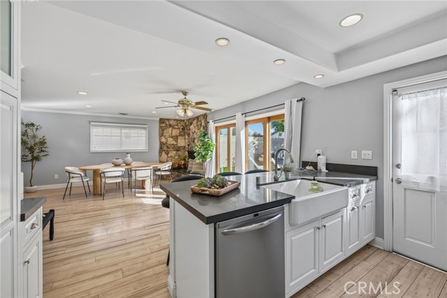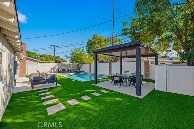 Step into this beautifully updated single-story gem in the heart of West Hills. Set on a spacious, flat lot, this move-in-ready home offers peace of mind with major upgrades. Inside, enjoy a bright open layout with a cozy fireplace dividing the living and family rooms. The remodeled kitchen features quartz countertops, a large island with bar seating, subway tile backsplash, stainless steel appliances, and custom cabinetry with direct access to the backyard. French doors open to a serene outdoor space with fruit trees, a grassy yard, and a covered patio perfect for relaxing or entertaining. The bedrooms are spacious, and the updated bathrooms include a floor-to-ceiling tiled shower and a tub with modern finishes. Located on a quiet, tree-lined street with excellent curb appeal, Hartland offers the ideal balance of comfort, style, and convenience. Don’t miss this rare West Hills find!