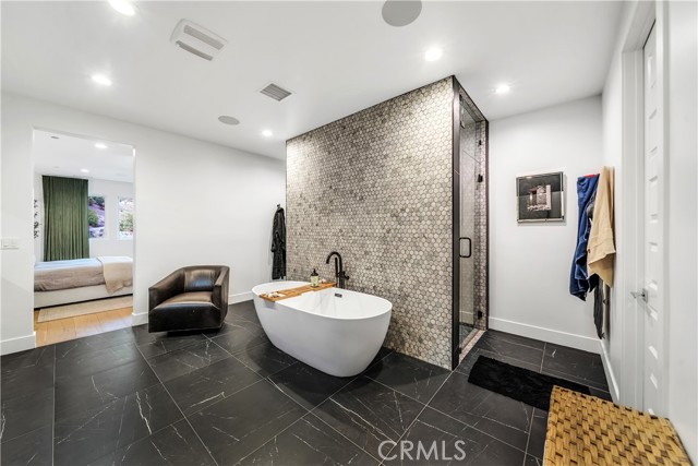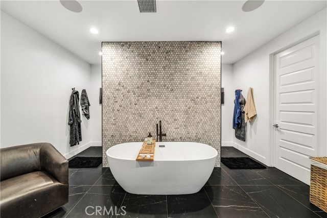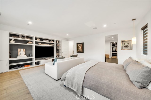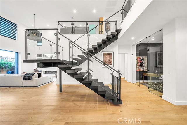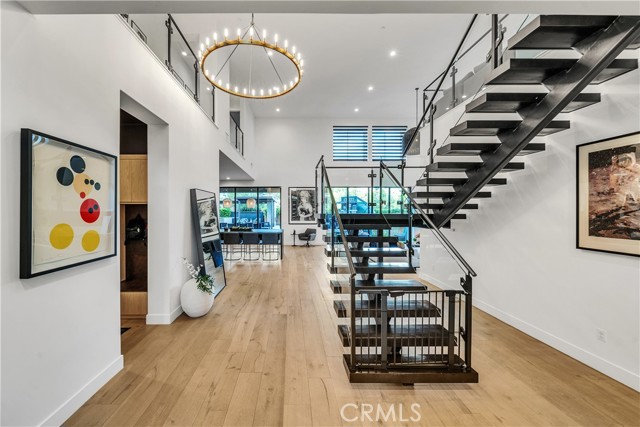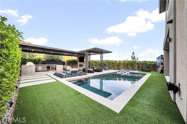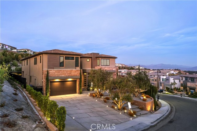 This luxurious residence sits on nearly 19,000 square feet—one of the largest lots available. Showcasing meticulously landscaped grounds with a grand driveway and a charming walkway lined with expensive age-old olive trees. Located behind the gates in the prestigious Westcliffe community, a guard gated enclave in the upscale Los Angeles suburb of Porter Ranch. This Vega floor plan- Cascades Collection is 4,932 square feet of living space, and it's no surprise that this layout is a favorite among many. As you enter, you’ll be captivated by the dramatic floating piano-black staircase, expansive 11-inch white oak flooring, and soaring ceilings that create an inviting atmosphere. This home offers five spacious bedrooms and five bathrooms, including a generous en-suite bedroom on the first floor with a retreat area. An elegant executive-style office, complete with double glass doors, provides an ideal executive workspace. The heart of the home is the state-of-the-art Elmar Cucine kitchen, known for its exquisite Italian craftsmanship. Featuring clay-finished and matte lacquer cabinets, a striking 20-foot custom porcelain island, and high-end Thermador appliances. Flush sliding pocket doors and floor-to-ceiling windows enhance the open-concept layout, allowing natural light to flood the space. Enter the living area to find breathtaking 72 inch open shelving fireplace with custom floor-to-ceiling wall treatment. Ascend to the second floor to discover the expansive master suite, complete with dual vanities, a walk-in shower, and a luxurious freestanding soaking tub set against Italian oak finished vanity with white quartz countertops. Four additional bedrooms and three bathrooms with a loft area featuring custom built-ins serving as movie room. Step outside to your private backyard oasis, featuring a pebble Fina pool and spa, two fire pits, an oversized recessed patio lounge, a BBQ center, tranquil waterfall feature and outdoor pool shower. Smart home with an integrated sound system, sonos speakers for seamless backyard entertaining, and OWNED SOLAR PANELS. This incredible home offers the ultimate blend of luxury and comfort in a sought-after community.