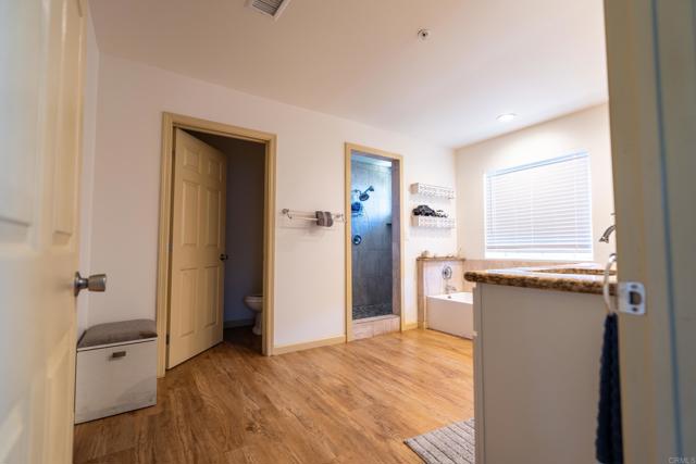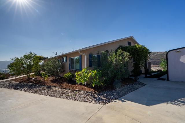 This is a rare opportunity to own a beautifully designed home with both comfort and investment potential in one of North County’s most scenic locations. Gorgeous Single-Story Home with Sweeping Country Views in Bonsall. Located within the desirable Bonsall planning area and Bonsall school district, this stunning energy-efficient home offers modern comfort, privacy, and breathtaking views—all just minutes from Interstate 15. This home includes numerous upgrades throughout, including granite countertops, vaulted ceilings, and an open-concept floor plan that flows beautifully from one space to the next. The spacious kitchen features granite countertops with a matching backsplash, a large island, stainless steel appliances, soft-close cabinetry, and a walk-in pantry—perfect for cooking and entertaining. The primary suite offers a luxurious retreat with granite countertops, a large walk-in shower, soaking tub, and an expansive walk-in closet. Three additional bedrooms provide plenty of space for family or guests. Set on 3.73 fully fenced acres, this property is zoned for horses and access thru entry gate for added privacy and security. The property also features 16 owned solar panels, producing over 8,000 kWh per year. There is a gated bottom lot ideal for large truck access and potential business opportunity. Additional highlights include: Approved plans (fees paid) for a second dwelling unit featuring a 2-car garage with bathroom downstairs and a 2-bedroom, 1-bath living area upstairs (approximately 1,680 sq. ft. total). Multiple potential building sites for the second unit. RV storage facility with cleanouts. Over 100 feet of frontage on Old Highway 395, offering potential commercial opportunities. Enhanced privacy fencing in the back and side yards.