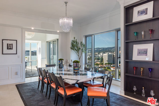 Crowning the skyline above the Wilshire Corridor, Residence 1702 at The Remington reflects the height of refined living. Set within one of Los Angeles' most distinguished full-service towers, this reimagined North facing three-bedroom, three-and-a-half-bath residence merges contemporary design with timeless sophistication. A private elevator opens directly into a gracious foyer leading to a grand living room framed by floor-to-ceiling glass and panoramic views of Holmby Hills, Bel Air, and UCLA. A sculptural stone fireplace anchors the space, while the adjoining dining room and terrace create an effortless flow for entertaining. The west-facing chef's kitchen features custom Poggenpohl cabinetry, professional-grade appliances, and a sunlit family room that captures the beauty of the western sky. The serene primary suite offers two expansive walk-in closets, a spa-inspired bath, and Venetian plaster walls that convey understated luxury. Two additional bedroom suites complete the thoughtfully designed floor plan. Spanning 3,531 square feet with two balconies, this residence showcases impeccable detailing and a seamless integration of form and function. Life at The Remington combines privacy, discretion, and five-star service. Residents enjoy 24-hour valet and concierge, a heated lap pool with sundeck and a state-of-the-art fitness center. Elegant gathering spaces include a library, fireside lounge, card room, and private salon with catering kitchen. A temperature-controlled wine locker, dedicated storage room, and three parking spaces enhance the offering. One of the few buildings in Los Angeles with direct elevator access to each residence, The Remington stands as a benchmark of architectural grace and urban serenity. Residence 1702 is a testament to elevated living, where craftsmanship, comfort, and panoramic beauty converge in perfect harmony.