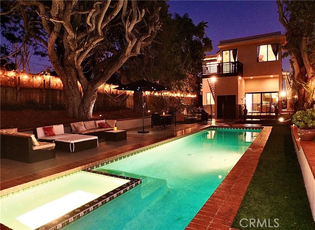 Architecturally Unique! Contemporary and Modern GEM with Mid-Century stylings. Exudes character & privacy, outdoors and in! This sunlit, open concept HOME spans 3,650 S.F. & sits on a large, elevated lot with a 40-foot 'Margarita' (lap) pool & spa, dine under the open sky in the alfresco spaces. Minutes to Manhattan and Hermosa Beaches & up the street from Mira Costa High School. This home has been beautifully renovated from the hard wood floors, bath and kitchen remodels to major systems and creature comforts including intercoms and whole house speakers to set the mood for any occassion. Five Bedrooms and 4 spa-inspired baths offer solitude for family & guests. The chic office with glass walls opens to a central courtyard & offers inviting spaces for work or play, while aprox. 7,700 square foot lot becomes your very private sanctuary! Sunlight pours through tall, curved walls and soaring ceilings, sun windows & sliding glass doors that invite the outdoors in. entertain with ease in multiple outdoor living spaces, each designed for a festive & intimate mid-century experience. Imagine fireside evenings in the family room, poolside cocktails at the sleek wet bar, and sun-drenched afternoons in the lush backyard. Custom built-ins, generous closets, and a skylit upstairs laundry room elevate daily living. Whether you’re working from home, hosting vibrant pool parties, or enjoying tranquil nights beneath the stars, the expansive fenced backyard lights up with the tap ofan app! A pool bathroom with a walk-in shower keeps the indoors pristine. Back stairs lead directly to the primary en-suite, where a private balcony views the backyard. The kitchen is a culinary haven, boasting modern soft-close cabinetry, a sunlit garden window, walk-in pantry, stainless steel appliances, farmhouse sink, brand new 5-burner stove, and double oven. The open countertop with barstools seamlessly connects the kitchen to dining, living, and outdoor spaces, perfect for lively gatherings or quiet drinks. Retreat to the primary en-suite to soak in treetop & pool views. The attached two-car garage has an electric car charger and a generous driveway. Minutes from iconic Manhattan and Hermosa Beaches, you’ll have endless dining and entertainment options at your doorstep.Only a 10-minute drive from LAX, start living your best life today!