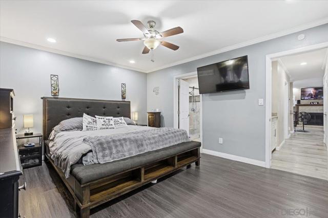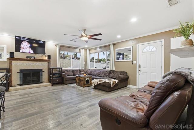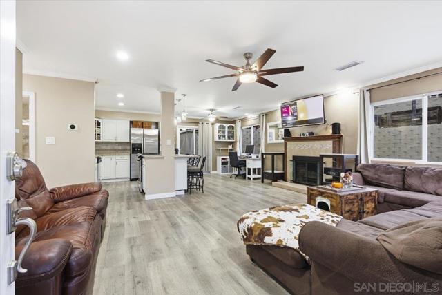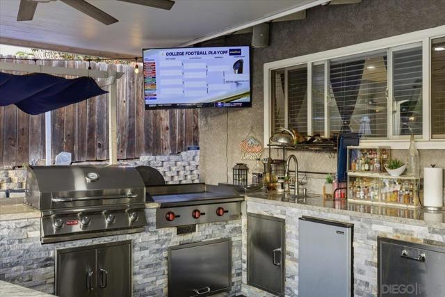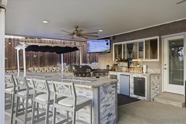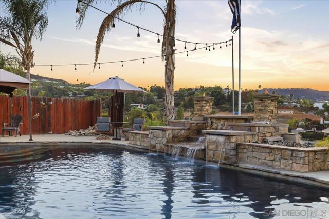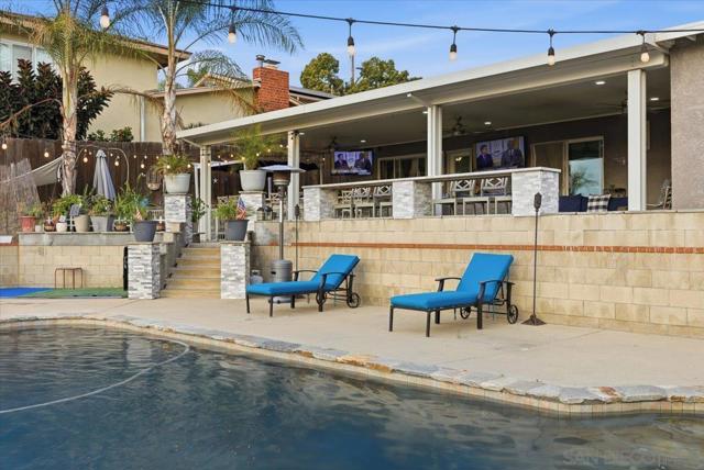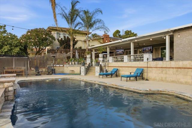This beautifully maintained 3 bedroom, 2 bath open-concept home welcomes you with warm natural light and thoughtful updates throughout. The spacious kitchen features an inviting island, a large gas stovetop, and seamless flow into the dining and living areas—perfect for everyday living and effortless hosting. The home includes a large guest bathroom and a remodeled primary en-suite bathroom, with the primary suite opening directly to the backyard—ideal for stepping out to enjoy your morning coffee or unwinding with a glass of wine as the day comes to a close. Step outside and discover a backyard designed for moments that turn into memories. An outdoor living room sits just steps from a chef’s-grade outdoor kitchen featuring a premium grill, built-in griddle, dedicated side burner, and elegant fire features set into the granite countertop—adding warmth, ambiance, and a touch of luxury to every evening outdoors. From here, the space cascades gracefully to the lower-level pool and entertainment area, where a sparkling pool with a sunlit Baja shelf and umbrella sleeves invites you to lounge in the water while staying cool on warm Southern California days. Every corner of this outdoor retreat is crafted for connection, celebration, and lingering conversations long after sunset. Additional features include RV parking, solar, and a newer HVAC system. Close to shopping, restaurants, and schools, this home offers a lifestyle rarely found yet always sought after—and a backyard you’ll never want to leave.