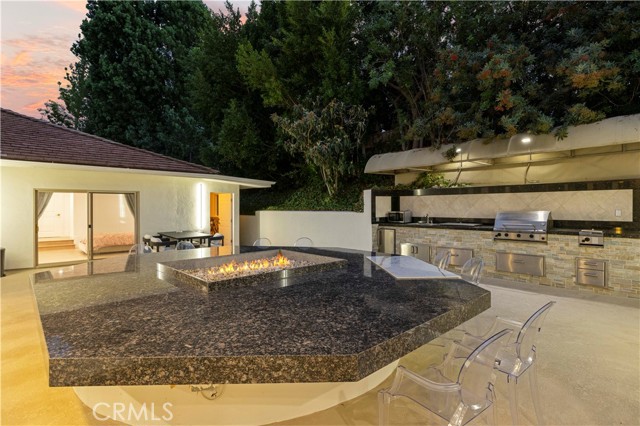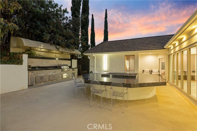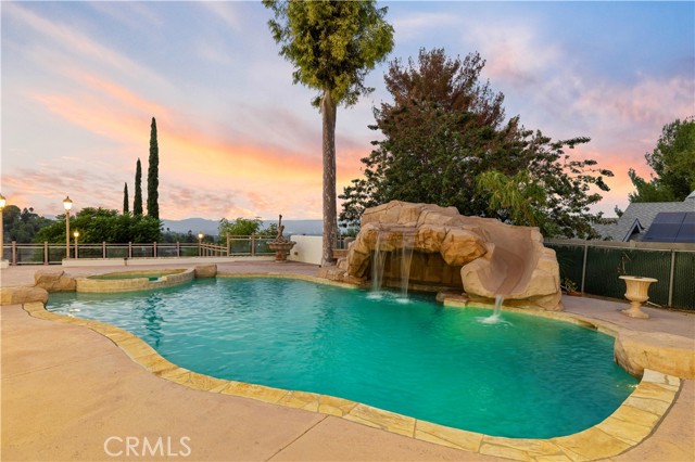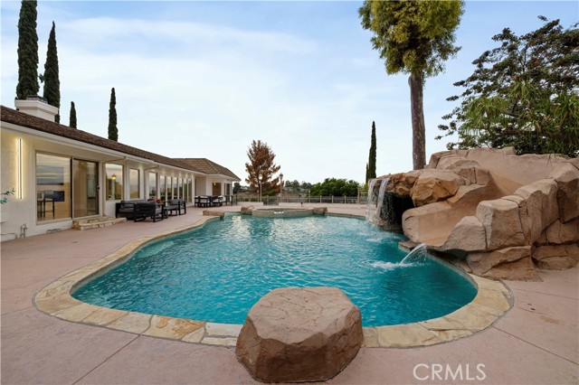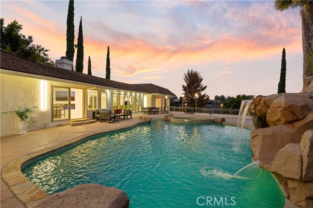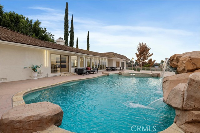 Introducing a truly exceptional property that perfectly blends privacy, sophistication, and high-quality craftsmanship. Nestled in a premier location, this home’s beauty and exclusivity are simply breathtaking. From the moment you step inside, you’ll be greeted by soaring ceilings, high-end finishes, and light-filled open spaces designed for both intimate living and grand entertaining. The seamless indoor/outdoor flow makes it ideal for gatherings, while 5 spacious bedrooms and 3.5 bathrooms provide ample room for comfort and relaxation on nearly one acre of land. The beautifully updated kitchen is a chef’s dream, flooded with natural light and equipped with top-of-the-line Thermador appliances, opening to a cozy family room with a fireplace. The primary suite offers a luxurious retreat with a romantic balcony, two expansive walk-in closets, and a spa-like bathroom. Additional highlights include a smart home surveillance system for enhanced security and abundant windows showcasing stunning views of the lush landscape. Step outside to your private resort featuring a sparkling pool with a waterfall and slide, a fully equipped outdoor kitchen and BBQ area, and a park-like backyard perfect for children or quiet moments. Uniquely, the property offers direct access to Corbin Canyon trails right from the backyard—a rare convenience for nature lovers and outdoor enthusiasts. This estate combines unparalleled scale and quality with every imaginable amenity. The location, design, and flawless condition will captivate you from the very first visit.