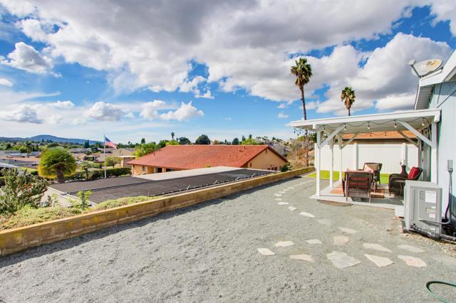 Welcome to your tranquil retreat at 1723 Kiwi Glen in Escondido with STUNNING VIEWS! This beautifully updated residence offers an inviting blend of modern comfort and serene living, nestled in a land-owned, 55+ community. Property is on a 433A permanent foundation. You own the land and it's not a lease! Step inside to a spacious 1,440 square feet of living space, featuring two bedrooms and two bathrooms. The interior boasts updated amenities including recessed lighting in the kitchen, laminate flooring, and a gas cooktop with hood. The large center island with pull-out storage drawers and a sit-at counter invites culinary creativity and casual gatherings. Dual pane windows and shutters enhance energy efficiency and privacy. The exterior is equally impressive with its low-maintenance landscaping and drip system, ensuring your yard looks beautiful year-round with minimal effort. The west side of the home features a custom putting green with synthetic turf, perfect for golf enthusiasts. Enjoy panoramic views from the privacy of your quiet covered patio. For your comfort, the home includes central heat and air conditioning, ceiling fans, and dual pane windows. Additionally, there's a convenient shed measuring 8x8, equipped with electricity, shelving, and a workbench for extra storage needs. Community amenities further enhance the lifestyle with Residents having access to a pool, spa, gym, and clubhouse with a library and shuffleboard. Plus, the HOA covers Cox cable and HBO.