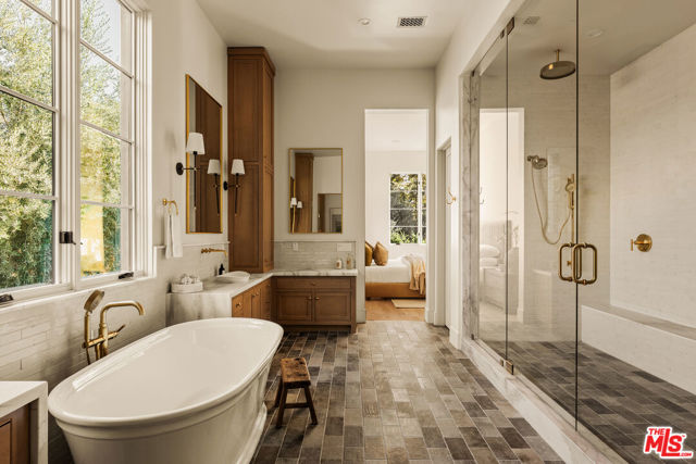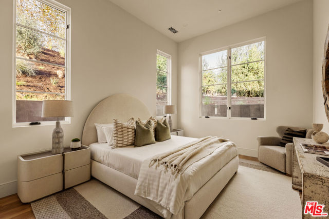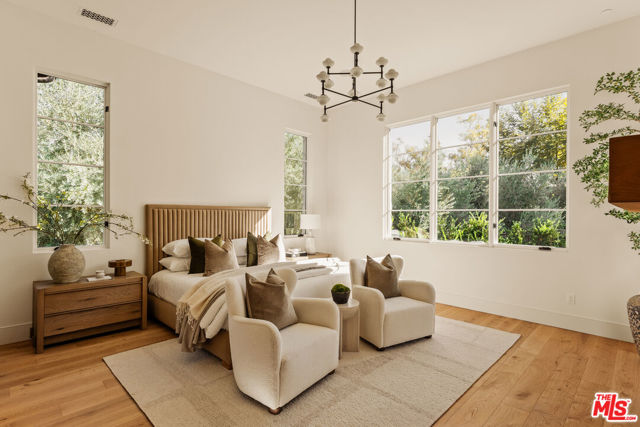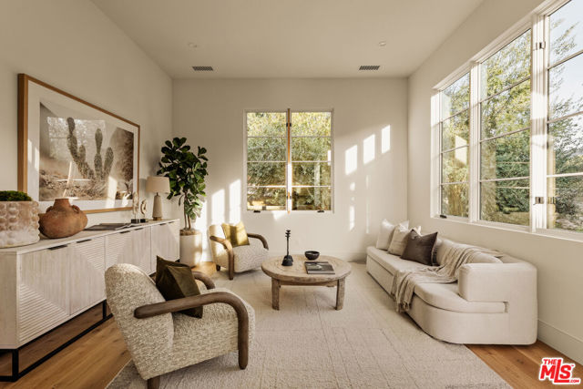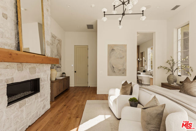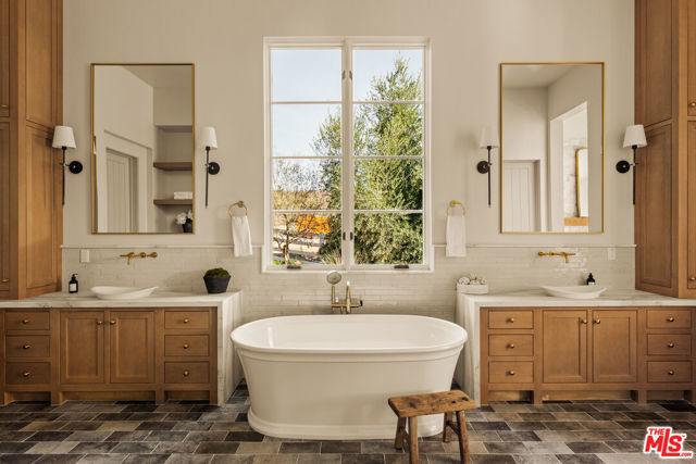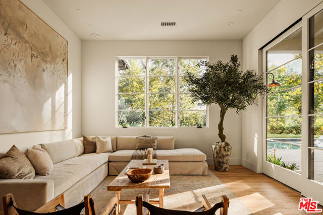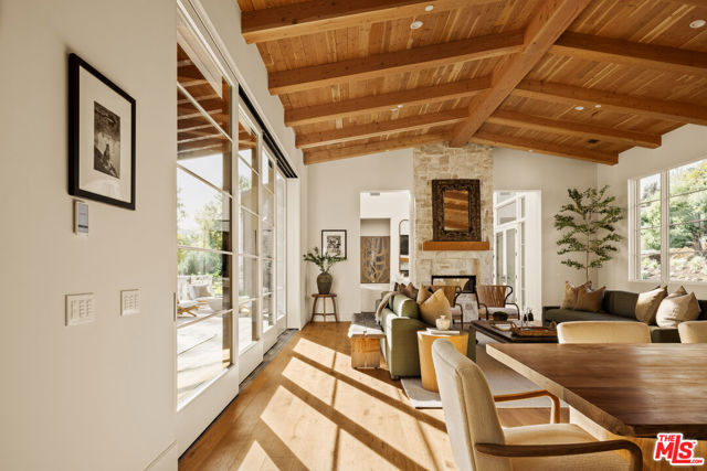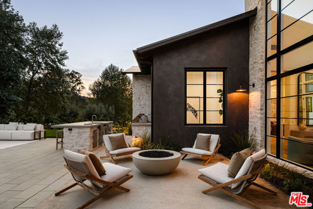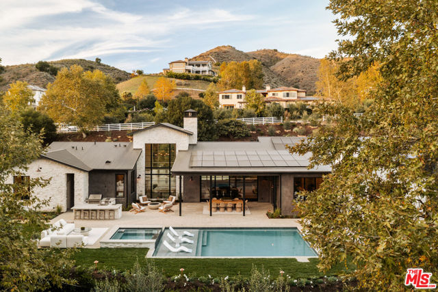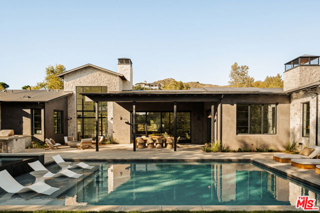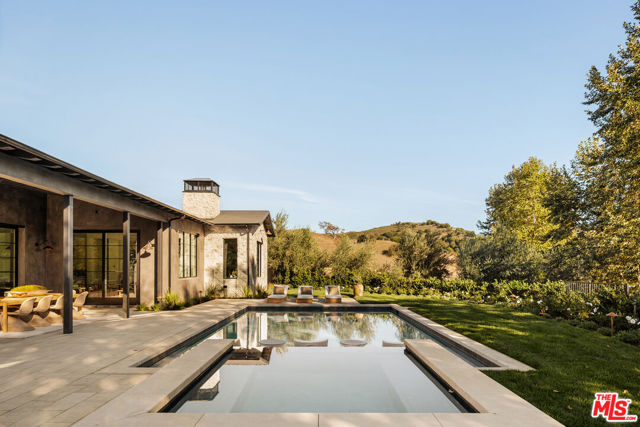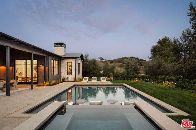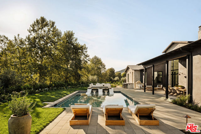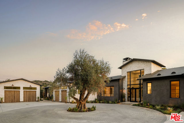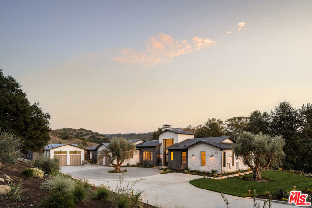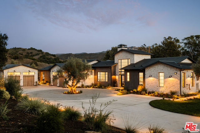 Tucked beyond a long, private drive within the exclusive gates of Malibu Valley Estates, this newly completed Modern Ranch estate reimagines California countryside living with a warm and contemporary refinement. Framed by the rolling hills of the Santa Monica Mountains, the residence is the latest work by one of Southern California's most meticulous luxury builders, showcasing an elevated palette of natural stone, light wood, and bespoke finishes that celebrate texture, scale, and serenity. Set on approximately 1.7 acres behind its own secondary gates, the 6,000+ SF single-story compound spans 12 - 26 ft ceilings and is thoughtfully composed of a Main Residence, Junior ADU, and full Guest House, ideal for multi-generational living, long-term guests, or dedicated office/studio spaces with complete privacy. Designed to embrace an authentic indoor-outdoor flow, the interiors feature artisanal craftsmanship displayed through expansive stone accents, wide-plank engineered hardwood, custom millwork, solid-core doors, and floor-to-ceiling walls of glass that blur the line between home and nature. At the heart of the residence is a dramatic great room and an impeccably curated chef's kitchen outfitted with Gaggenau and Thermador professional appliances, an oversized eat-in island, marble countertops, and a walk-in pantry designed for both intimate living and grand-scale entertaining. The primary suite is its own sanctuary, offering 12 - foot ceilings, a fireplace, a spa-inspired bathroom with dual vanities, a soaking tub, and a generous shower wrapped in stone. Outdoor living unfolds across multiple destinations, covered patios, an expansive poolside terrace with a full outdoor kitchen and pool bath, a romantic fire-pit lounge, and spacious lawns surrounded by mature landscaping. A lower portion of the lot provides the rare possibility to accommodate recreational amenities just moments from nearby riding trails and a renowned hunter/jumper center. A striking and secluded retreat only a short drive to Pacific Coast Highway, US-101, Erewhon, Old Town Calabasas, and the region's best hiking and biking, this estate offers a rare opportunity to experience handcrafted luxury, nature, and privacy without compromising proximity. A true legacy property, timeless, refined, and thoughtfully built for those who value exceptional living.