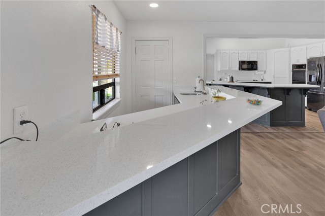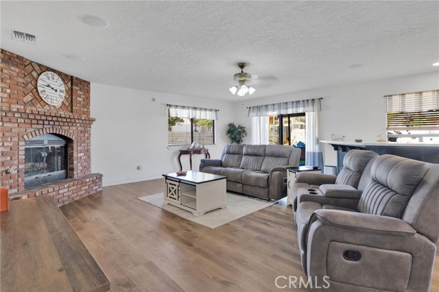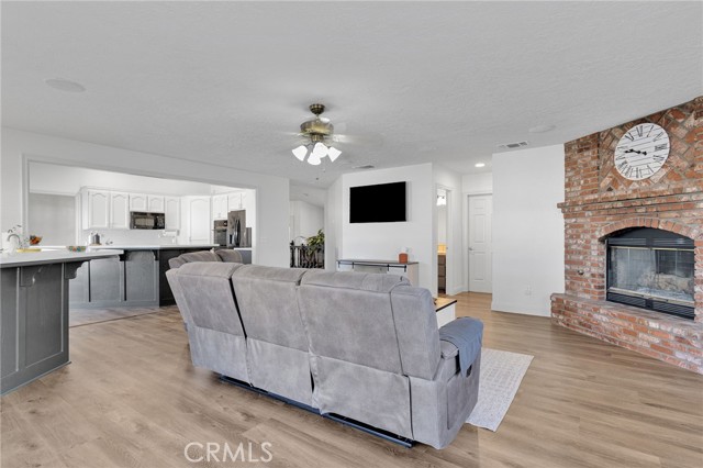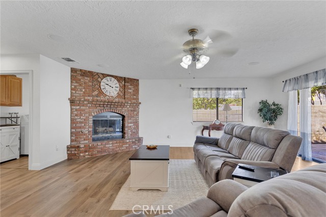 LOCATED IN THE HIGHLY DESIRABLE MESA AREA OF HESPERIA. GORGEOUS MOUNTAIN VIEWS. NEW PAINT AND FLOORING THROUGHOUT. Three bedrooms and two and a half baths all with mirrored wardrobe doors. Spacious formal living and dining room. Beautiful updated kitchen with quartz counters, freshly painted cabinets, walk-in pantry, breakfast nook and breakfast bar. Cozy family room with impressive fireplace and wet bar. Double door entry to primary bedroom. Walk-in closet. Double-sided fireplace in the primary bedroom and bath. Primary bath with separate tub and shower. Indoor laundry room with storage. Beautifully landscaped with brick and wrought-iron fencing. Large covered patio and front porch. Close to Hesperia and Silverwood Lakes. Close to schools. Easy access to the I-15 Freeway & 138 via Ranchero Road.