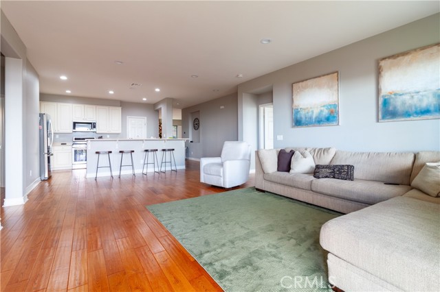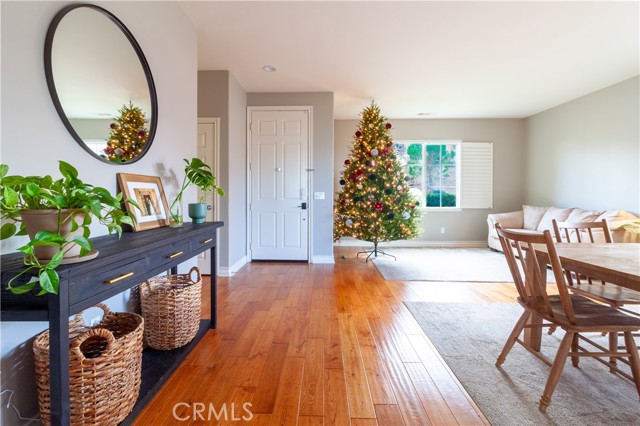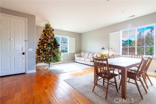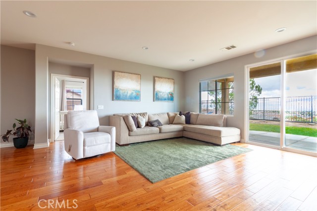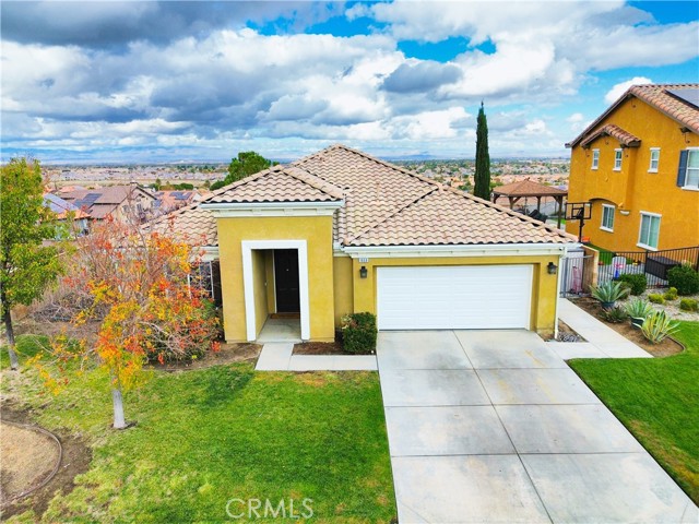Stunning single-story home offering breathtaking views of the Antelope Valley. This beautiful residence features 3 bedrooms and 2 bathrooms, encompassing 2,011 sq. ft. of thoughtfully designed living space. The open-concept floor plan includes an inviting kitchen with upgraded cabinets, under-cabinet lighting, stainless steel appliances, canned lighting, and a breakfast bar, seamlessly flowing into the spacious family room. Large sliding glass doors in the family room lead to a meticulously landscaped backyard with a covered patio—perfect for enjoying sunrises and sunsets while taking in the spectacular valley vistas. The master suite is privately situated, featuring a luxurious bathroom with a large garden tub, walk-in shower, dual sinks, and a walk-in closet, along with a sliding glass door to enhance the view. Formal living and dining areas are bright and airy, finished with beautiful wood flooring that extends into the main living spaces. This home is an exceptional opportunity for comfortable, elegant living with stunning natural surroundings.