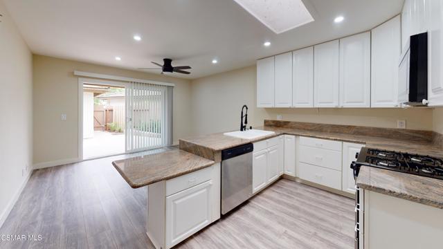 High quality remodeled single story Village Glen home in nice location in heart of Westlake. Newer flooring, windows and doors and paint. Spacious living room with fireplace, open kitchen with granite counters and newer cabinets, Kitchen has eating counter and opens to family room. Remodeled baths and good size bedrooms. with ceiling fans. Private patio with two car private garage. Complex has pool, spa and plenty of guest parking.