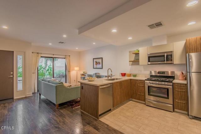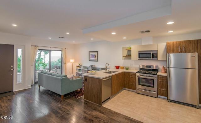 Discover modern comfort and effortless living in this spacious one-bedroom condo, built in 2017 with luxury finishes throughout. Located on the ground floor for easy accessibility, this home welcomes you with an open airy layout and high-end details at every turn. The living area flows seamlessly to your private patio and outdoor space, perfect for relaxing, entertaining, or enjoying fresh air right at home. A beautifully maintained communal garden adds even more room to unwind and connect with nature. Inside, the bedroom features brand-new plush carpeting and a large walk-in closet offering exceptional storage. In addition, the entire interior has been freshly painted. The modern kitchen boasts premium finishes, while in-unit laundry brings everyday convenience. This condo also includes two side-by-side underground gated parking spaces, a rare and highly desirable amenity that adds both security and ease. Situated in a fantastic location in Pasadena, you'll enjoy close proximity to shopping, dining, transit, and neighborhood conveniences - everything you need right at your doorstep. Stylish, move-in ready, and designed for comfort, this is the perfect place to call home.