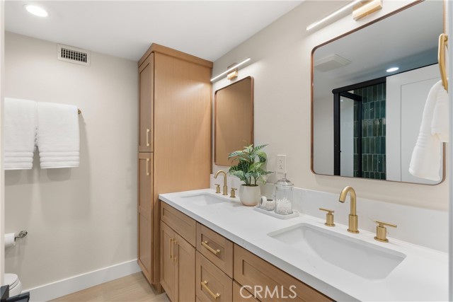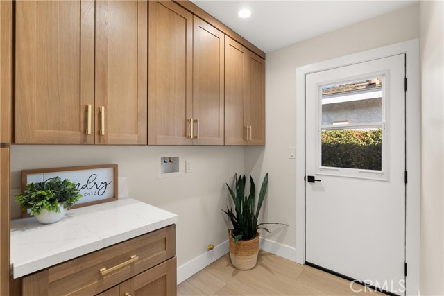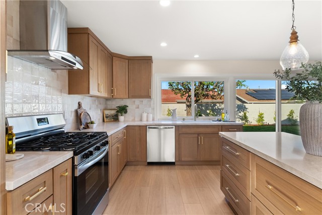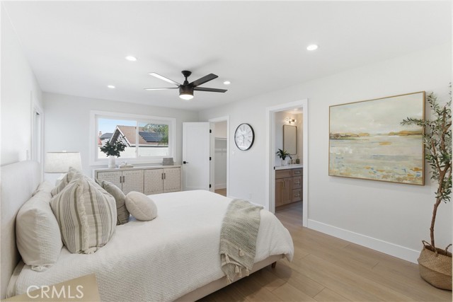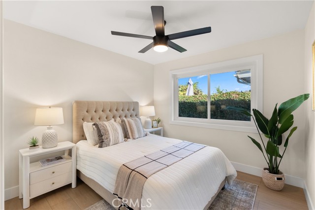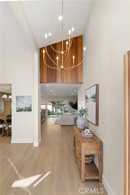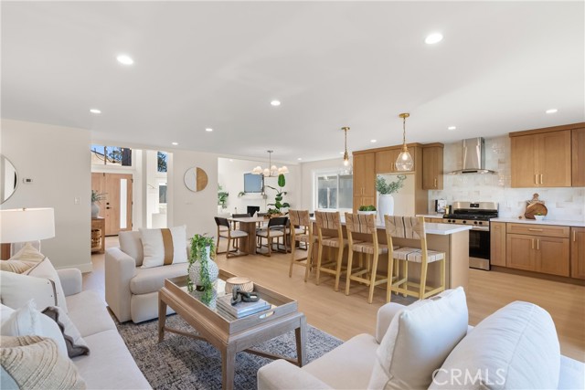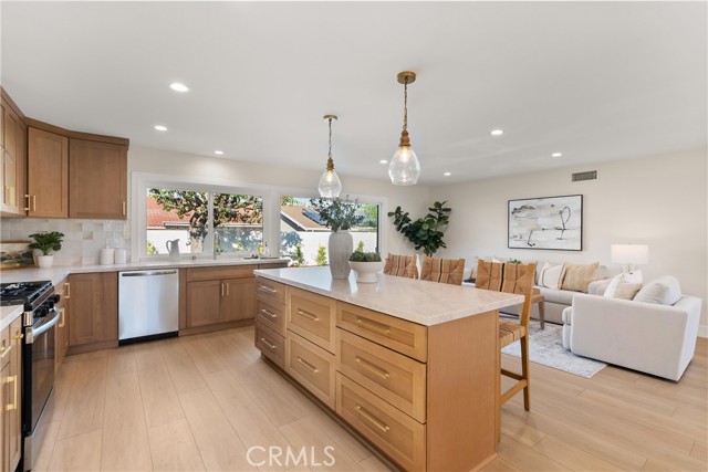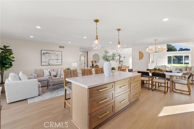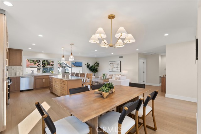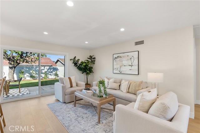 Beautifully renovated single story 4 bedroom 2 bathroom home located in the highly desirable College Park East neighborhood of Seal Beach, within the award winning Los Alamitos School District. This modern and move-in ready home offers designer upgrades, open concept living, new: wide plank flooring, ceiling fans, quartz counters, redesigned bathrooms, recessed LED lighting, and a clean coastal aesthetic throughout. The expanded kitchen features Taj Mahal quartz countertops, new cabinetry, stainless appliances, elegant pendant lighting, and a large center island that opens to the living and dining areas. The layout is ideal for everyday living and entertaining. Wide plank, luxury waterproof vinyl flooring, new interior doors, and contemporary fixtures create a cohesive and elevated feel in every room. The primary suite includes a beautifully updated bathroom with a glass enclosed walk in shower and modern tile. Three additional bedrooms, each with dual mirrored closet doors & closet lighting, offer options for guests, work from home, or fitness space and a full sized interior laundry room with ample storage and cabinetry. The second full bath has also been remodeled with current designer finishes. Outside, the low maintenance yard extends the living space, is perfect for outdoor dining or entertaining. Adding to the most updated style and design is the comfort of an energy efficient heating and AC system and that each bedroom has their own center ceiling fans, all dual pane windows. The single loaded street means that you have unobstructed views of Almond Park directly across the street, offering over an acre of outdoor space, a playground, basketball court, and open grass field just steps from the front door. A wide driveway and attached, fully finished, painted and epoxy floor garage, and the interior tract location minimizes drive by traffic. The modern design is captured inside and outside, with rich wood tone accent sides that flow to the new double door enter and inside. College Park East is one of Seal Beach’s most sought after neighborhoods due to its proximity to Los Alamitos schools, the Seal Beach Tennis and Pickleball Center, Old Ranch Country Club, Old Town restaurants, the beach, and easy access to the 405 and 605 freeways. This is the turnkey single level home buyers consistently look for in Coastal North Orange County, fully updated, functional, and move in ready from day one.