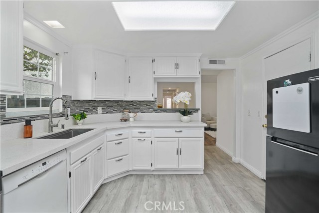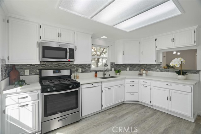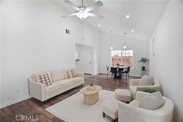 Turnkey Single Story Home in the City of Santa Clarita, the popular American Beauty Classics. NO MELLO ROOS tax bonds here. Recent home improvements include (but not limited to): November 2025: fresh coat of white paint, and recessed lights. December 2022: 30 Solar Panels Owned (no lease payments), and installed in the garage is an Electric Vehicle (EV) charging outlet currently being used to charge a Tesla vehicle. Year 2018: remodeled the kitchen with new quartz countertops, backsplash, painted the cabinetry and installed hardware, installed stainless steel sink and appliances, and laminate flooring. Remodeled the guest bathroom with a new vanity and flooring. Installed laminate flooring throughout the living areas and bedrooms. Laundry day is convenient with an indoor laundry room, washer and dryer side by side and space for additional cupboards. The backyard is spacious and ready for your creative ideas. The HOA amenities include (but not limited to): front yard landscaping maintenance and water irrigation, a park, sport courts, 3 tennis courts, and 4 swimming pools. Located near many public transportation facilities such as the Metrolink station, the Metrobus station, and the 14 freeway.