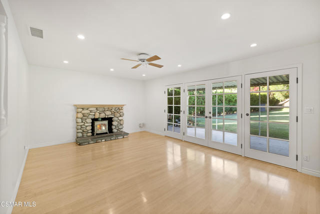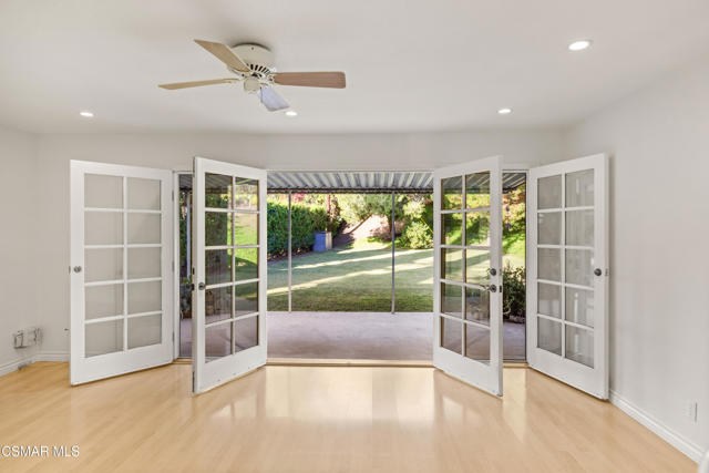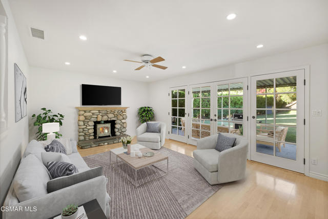 A long driveway welcomes you to this charming 3 bedroom, 2 bath home on a 14374 sq ft lot. A highlight is the enormous backyard with lots of privacy and plenty of room for a pool or an ADU. The roof and entire HVAC system is only 5 years old. New paint, woodlike flooring and dual pane windows throughout. The living room boasts a river rock fireplace with a wood burning stove and French doors that beckon you to the backyard with all its possibilities. The primary bath features a newer vanity. Possible RV or boat storage space on the side pad. There's also several pomegranate trees in the backyard. Shopping, dining, Trader Joe's and schools are nearby. The 1765 acre Wildwood Park with 27 miles of hiking trails is minutes away. Move in and make this home your own!