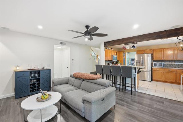 This move-in-ready, 3-bed, 2.5-bath, 1,675 sq ft. home is located in the quaint California Terrace development. Walk through the front door & enjoy the open floor plan with large living room featuring vaulted ceilings & lots of windows that provide plenty of natural light. Your comfy family room, with surround sound system is the perfect place to enjoy a night with the family. And the dining area will be perfect to celebrate the holidays with your family & friends! Owners recently installed new laminate floors, energy efficient dual pane sliders, recessed lighting, HVAC system, hot water heater & roof! Couple these with high-quality ceiling fans in all rooms, a 26-panel leased solar system w/a Tesla battery & your energy bills will please you! And who doesn’t love a kitchen w/granite counters, eat-in breakfast nook, bar stool height kitchen counters, stainless steel appliances, gas range & tons of cabinet space? And the faux beams in the kitchen & dining room are such a nice touch! The master bedroom with remodeled bath & new Trex deck balcony is perfectly situated to enjoy mountain views, sunrises & sunsets! And just down the hall are 2 additional bedrooms which share a full bathroom. Your backyard features astroturf grass with room to play and is a great place to entertain with artificial turf & mature landscaping. Love fresh fruit? Then you’ll love the cherry, avocado, apple, guava, lemon, grape vines & even an almond tree! This home is located in the middle of town close to schools, shopping, & dining & just 5-minutes from the freeway! Great for FHA & VA buyers too!