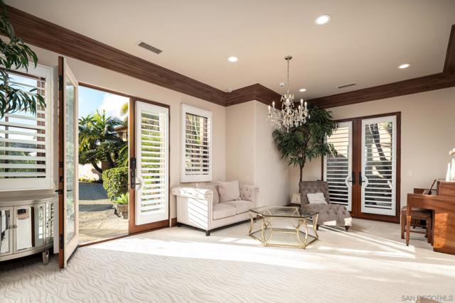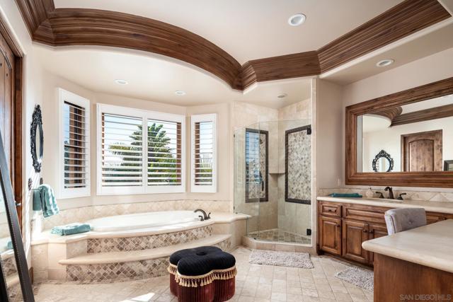 Elegant updated custom estate located within the prestigious 24-hour guard-gated community of Rancho Pacifica. Perfectly positioned on a premier 1.2-acre promontory site, the property enjoys stunning panoramic views—ocean to the west, golf course vistas to the north, and mountains to the east.Built in 2004, the main residence plus detached guest house and six-car garage are surrounded by mature landscaping that provides beauty, privacy, and a grand sense of arrival. Inside, the home showcases exceptional craftsmanship, soaring ceilings, and a thoughtful floor plan designed for both large-scale entertaining and comfortable everyday living. The main house offers six luxurious ensuite bedrooms, including an expansive primary retreat with sitting area, stone fireplace, large outdoor loggia with sweeping views, oversized dressing room, and spa-inspired bath. Generous formal and informal living spaces include a living and dining salon, chef’s kitchen with breakfast alcove and butler’s pantry, grand great room with open-beam ceilings and professional bar, game room, climate-controlled wine cellar, theater, and library/parlor. The resort-style grounds feature an outdoor living/dining room with stone fireplace, professional-grade BBQ and alfresco kitchen, pool bath, outdoor shower, two additional fireplaces, and a large pool with water feature and spa—all set within lush, manicured surroundings. With stone and wood flooring, custom cabinetry, and security system, this property offers exceptional quality, privacy, and luxury in one of Rancho Pacifica’s most coveted locations.