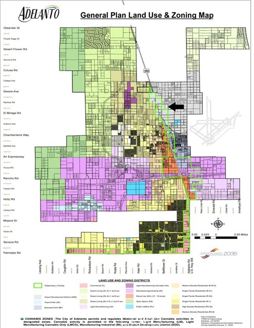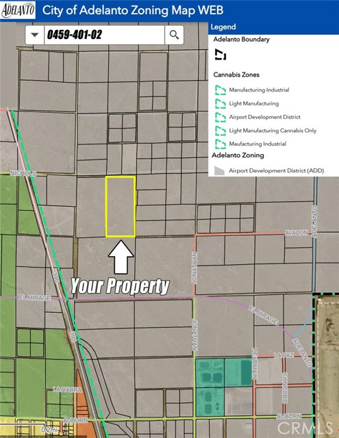 18.51 ac of ADD (Airport Development District) land in Adelanto, providing a wide range of Industrial and Cannabis use. Located just north of El Mirage Rd and about 2,000 ft East of Hwy 395 on Nichols Rd. Significant Industrial Development in the area including the new Amazon Distribution Center and SCLA developments.