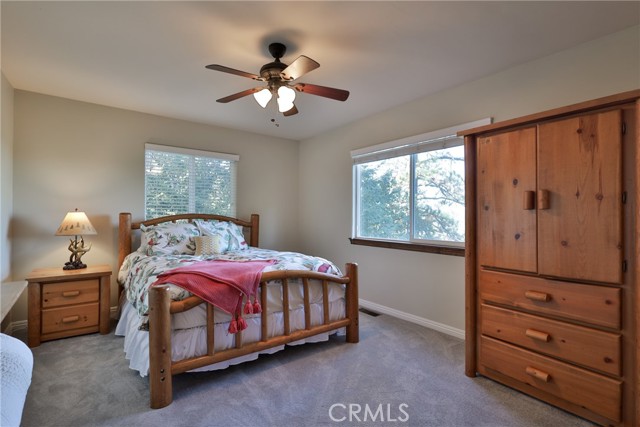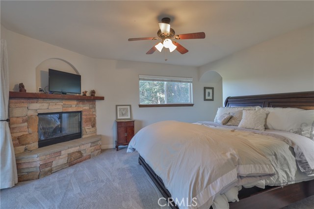 Spectacular home with awe-inspiring views of Lake Gregory and Mt. Baldy! This newer 3-bedroom, 3-bath property features a level-entry garage and a charming covered front porch complete with a bench swing. The main level offers an inviting living and dining area with hardwood flooring, a stone fireplace, and an open layout to the spacious kitchen, which includes granite countertops, dual ovens, and a center island with a copper vegetable sink — absolutely ideal for entertaining. Downstairs, the bedrooms are located off the game room and second deck. The primary suite features a rock fireplace and a large ensuite bath, creating a true sanctuary. All three levels offer decks with panoramic views where you can enjoy amazing sunsets, star-filled skies, and even the 4th of July fireworks over the lake. The third level, accessed by exterior stairs, is ready to be completed as an ADU or finished using the builder-designed option for an interior staircase to create a full three-level home. Located at the end of the road, providing this property extra privacy. This is the one you’ve been waiting for!