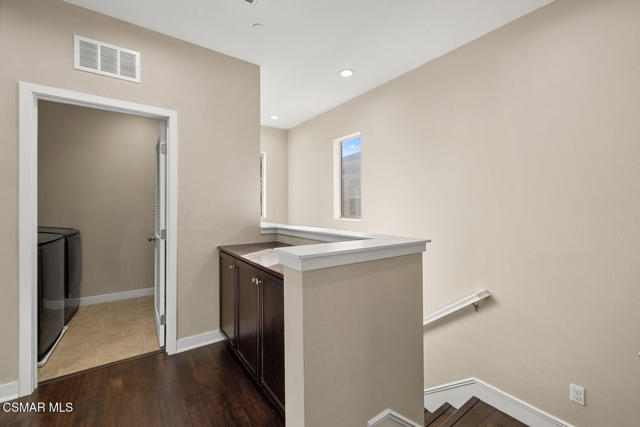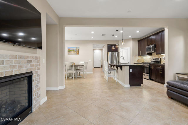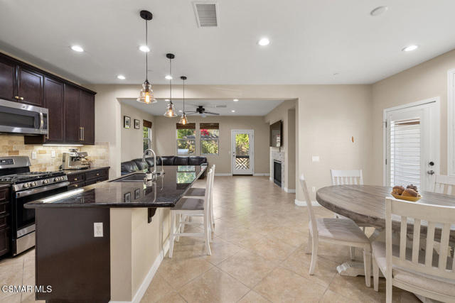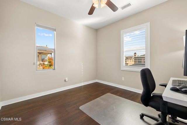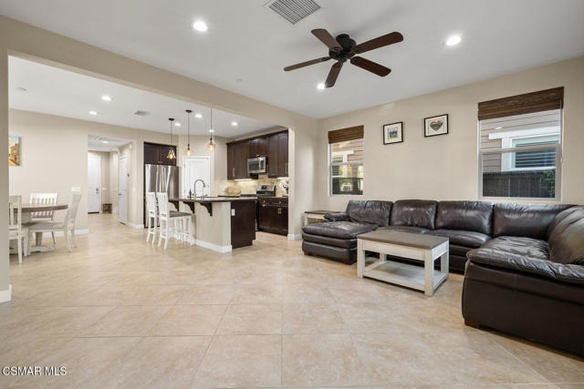 Welcome to this beautiful home in turnkey condition, located in Ventura's desirable Orchard Collection. Built in 2015, this highly upgraded residence offers 3 bedrooms plus a downstairs office, 3 full bathrooms, and about 2,075 sq. ft. of beautifully designed living space. The open floor plan features wood flooring, a spacious great room with a cozy fireplace, and a gourmet kitchen with a large island, granite counters, tiled backsplash, pantry. Reverse Osmosis Water Purification System, Kitchen Faucet, Cooktop/Range and Dishwasher are newly installed. Step outside to an expansive, landscaped backyard ideal for entertaining, complete with a built-in outdoor island with Big John BBQ and burner, large paver patio, outdoor dining set and wooden pergola, and raised planter beds, and producing fruit trees. Additional highlights include an extra-deep hall closet, attached two-car garage, Tesla wall charger, extended driveway, air conditioning, and multiple ceiling fans. Upstairs are three bedrooms, including a luxurious primary suite with a spa-like bath, dual sinks, walk-in closet with built-ins, separate shower, and soaking tub. A generous upstairs laundry room with a sink and ample storage adds convenience. The main-level office/den can easily function as a fourth bedroom, and 9-ft ceilings throughout offer an airy, upscale feel. Located on a quiet, tree-lined street in sunny East Ventura, close to excellent schools, parks, shopping, dining, and Ventura's beaches.