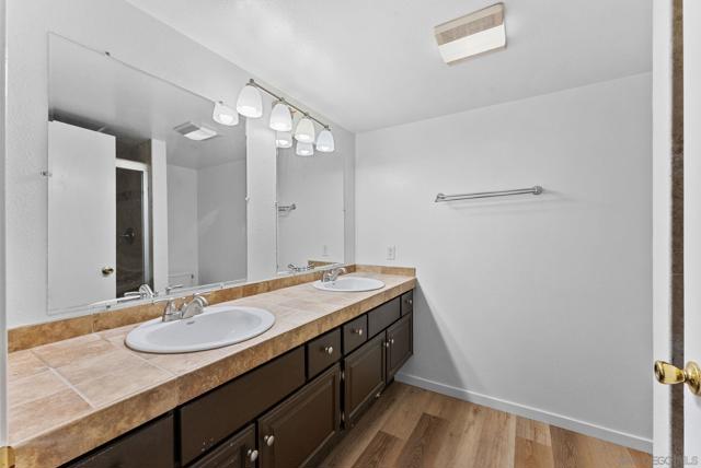 Bright, airy, and beautifully updated — this spacious “Matthews” plan condo in Playmor Terrace West offers comfort, style, and convenience in one of San Diego’s most desirable locations. The inviting main level welcomes you with new wooden plank flooring that enhances the open layout and adds warmth throughout. The large living and dining areas are filled with natural light and centered around a charming fireplace, creating a perfect setting for both relaxation and entertaining. The updated kitchen features sleek granite countertops, stainless steel appliances, ample cabinet space, and a breakfast bar that opens to the dining area for seamless flow. French doors lead to a private patio—an ideal spot for al fresco dining or unwinding under the stars. A full-size laundry room and convenient guest powder bath complete the first floor. Upstairs, the expansive primary suite feels like a private retreat, featuring generous closet space and access to a large balcony that invites fresh breezes and morning sunlight. Two additional bedrooms and two well-appointed bathrooms offer versatility for guests, a home office, or family needs. Additional highlights include dual-pane windows throughout, a large skylight that floods the stairway with natural light, and two private parking spots—one covered carport and one uncovered space conveniently located near the home. Residents of Playmor Terrace West enjoy a well-maintained community with two resort-style pools, lush landscaping, and a peaceful neighborhood atmosphere. Close to UCSD, dining, major freeways, parks, and much more!