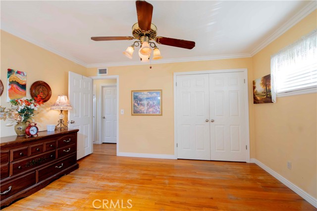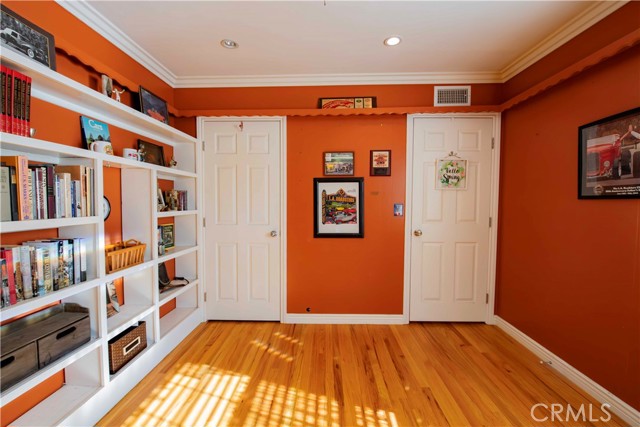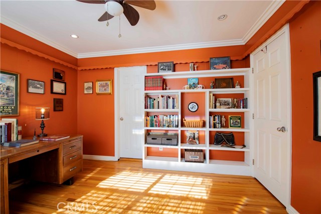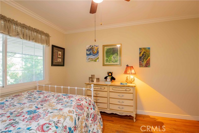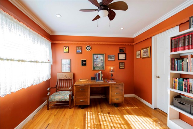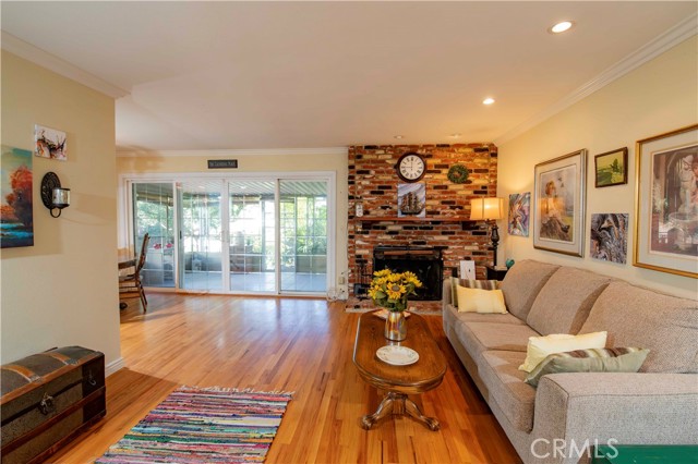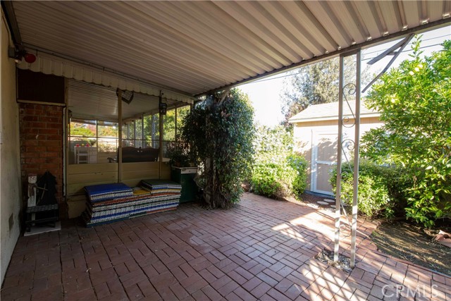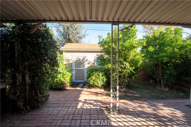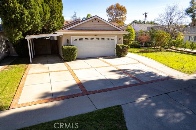 Introducing a cozy four bedroom, two bath home with wood floors throughout on a quiet street in a nice pocket of West Hills! The home offers plenty of parking with an over-sized two car garage plus a carport and ample driveway. The garage offers cabinetry for storage along with a work counter with natural light flowing in from a south facing window. Enter the home and relax in a living room with brick fireplace flowing in to a formal dining area and out to the enclosed patio. The kitchen with tiled counters and floors has bar top serving access to the dining area as well as a small eat-in area. The first bedroom has built in book shelves and direct access to the adjacent bathroom with walk in shower. The adjacent laundry room has side door access leading out to the side yard with easy access to the garage. There are three additional bedrooms down the hall as well as storage cabinets, a hall closet and full bath. The largest bedroom has built in storage cabinets beneath large windows and is adjacent to the hall bathroom. Make some light touch ups and move in or get creative, check with the City, open some walls and entirely re-imagine the space! The backyard has an over-sized storage unit and a small shed, fruit trees, covered patio, brick walk ways and garden like setting. This home is minutes to all major markets, the Village, Westfield Warner Center mall and Calabasas Commons.