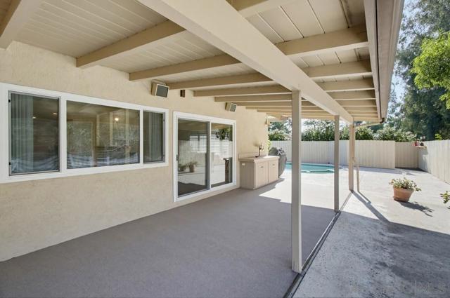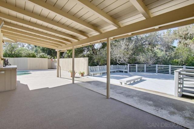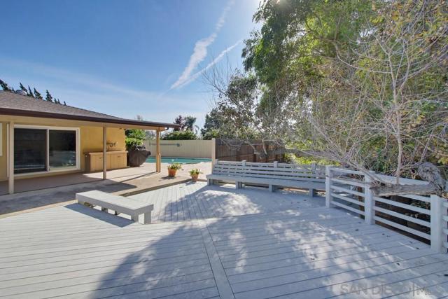 Nestled in the foothills of Mount Helix, this quiet cul-de-sac location, single story 4Br, 3BA has almost 2400 square feet on over an half acre lot. The double door formal entry leads to the open dining room and living room with views to the sparkling pool and large dining room, both with glass sliders to the covered patio and yard. The spilt bedroom floor plan includes an oversized primary suite having dual closets, 2 sink areas, and a glass door plus floor length window to the private, fenced courtyard. The central kitchen has a 5 burner gas range, trash compactor and double ovens. Off the kitchen is a breakfast room with bay window and wall of storage. The open concept family room has vaulted wood ceilings, a wood burning fireplace and glass sliders to the covered patio. There’s 2 bedrooms off the kitchen hallway, plus another bedroom currently used as an office. The lush grounds include a rose garden, wooded seasonal stream at the rear, a huge entertainers composite deck and a gorgeous pool for hot afternoons. Extras include a laundry room with utility sink, direct entry 3 car garage with openers and an epoxy finished floor, forced air heat and air, whole house water shut off system, plenty of cabinet storage, alarm system, dual pane windows, and dog run. This quiet, rural feel property is in the unincorporated part of El Cajon and close to shopping and freeways. Be remote, yet close to town and live your country dreams. Nestled in the foothills of Mount Helix, this quiet cul-de-sac location, single story 4Br, 3BA has almost 2400 square feet on over an half acre lot. The double door formal entry leads to the open dining room and living room with views to the sparkling pool and large dining room, both with glass sliders to the covered patio and yard. The spilt bedroom floor plan includes an oversized primary suite having dual closets, 2 sink areas, and a glass door plus floor length window to the private, fenced courtyard. The central kitchen has a 5 burner gas range, trash compactor and double ovens. Off the kitchen is a breakfast room with bay window and wall of storage. The open concept family room has vaulted wood ceilings, a wood burning fireplace and glass sliders to the covered patio. There’s 2 bedrooms off the kitchen hallway, plus another bedroom currently used as an office. The lush grounds include a rose garden, wooded seasonal stream at the rear, a huge entertainers composite deck and a gorgeous pool for hot afternoons. Extras include a laundry room with utility sink, direct entry 3 car garage with openers and an epoxy finished floor, forced air heat and air, whole house water shut off system, plenty of cabinet storage, alarm system, dual pane windows, and dog run. This quiet, rural feel property is in the unincorporated part of El Cajon and close to shopping and freeways. Be remote, yet close to town and live your country dreams.