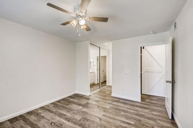 Beautifully remodeled single level 2 bedroom 2 bath condo available within the desirable Stony Brook community of Sabre Springs. The move in ready ground floor unit features a modern dual primary layout with vinyl plank flooring throughout, soft close cabinetry and a remodeled kitchen with farmhouse sink new appliances and stylish backsplash. In unit new stackable washer & dryer are neatly tucked behind custom barn doors. Unit also features a large covered exterior patio for entertaining with extra storage by the newer water heater. Community offers lush landscaping, pool and spa. Convenient access to the I-15 and SR-56 and located within award winning Poway school district. Great opportunity within a community with low HOA and no Mello-Roos.