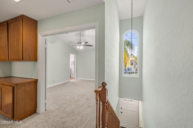 Experience comfort and style in this beautifully updated 3-bedroom, 2.5-bath home locatedin the highly desirable community of The Glen. The entry opens to a spacious, light-filledfloor plan featuring a brick fireplace, hardwood flooring and seamless flow between theliving and formal dining areas. A convenient main-level powder room is available forguests. Crown molding downstairs, no popcorn ceiling in the home, and cat5 wiring to the whole home. The eat-in kitchen features upgraded countertops, ample cabinetry, updated ceiling andunder cabinet lighting, a ceiling fan, and a garden window overlooking the tiled privatepatio with areas for planted landscaping--ideal for enjoying morning coffee or hostingweekend barbecues.Upstairs, the spacious primary suite features a vaulted ceiling, a ceiling fan, a large walk-incloset, and a private master bathroom with updated tile, flooring, vanity and lighting. Twoadditional bedrooms provide flexible space for an office, guest accommodation, or agrowing household, along with a full hall bathroom.Additional highlights include a two-car garage with laundry hookups, built-in storage anda new garage door opener. This home has a new HVAC (2025) and all newer, updated vinylwindows and new carpet. Kitchen and all baths have been recently updated.The well-maintained community offers lush green belts, mature landscaping, and a pooland spa just steps from your front door--true resort-style living. Set back from TierraRejada Road, the home enjoys a peaceful location. HOA dues include fire and earthquakeinsurance, roof and exterior maintenance, landscaping, common area upkeep, street andmailbox maintenance, and pool and spa access.Conveniently close to schools, shopping, dining, parks, and hiking trails, with easy access tothe 118 via Madera Road and the 23 via Tierra Rejada. Don't miss your chance to enjoythis exceptional community--schedule your tour today.