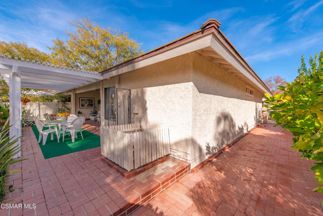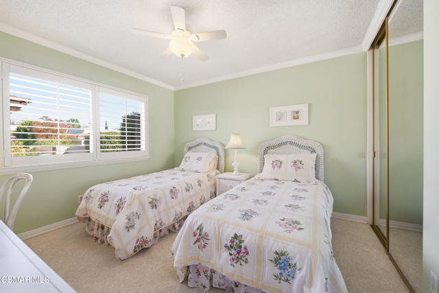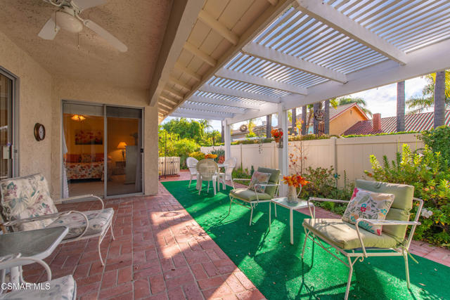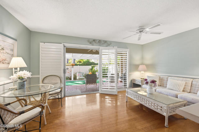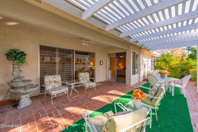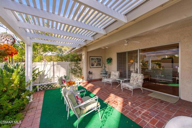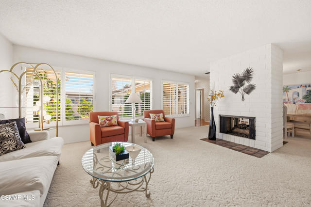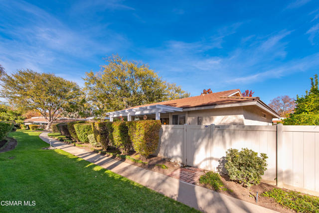 Welcome to this charming single-story residence in the sought-after Triunfo West community of Westlake Village. Ideally situated near the pool, mailboxes, and guest parking, this home enjoys one of the best locations in the neighborhood, backing directly onto the lush greenbelt The home is only attached on one side, offering a sense of privacy, and features an inviting courtyard entry that gracefully wraps around to the backyard. Inside, the sun-drenched living room is filled with natural light from windows overlooking the courtyard, while a dramatic open fireplace is shared with the formal dining room. The kitchen opens seamlessly to the family area, creating an ideal space for gatherings and entertaining.The spacious primary suite offers direct access to the back patio and includes a separate dressing area and bath. The secondary bedroom enjoys charming courtyard views, making it a cozy retreat.Triunfo West residents appreciate the beautiful walking paths along expansive greenbelts and the convenience of being close to the heart of Westlake Village, with shopping, dining, and recreation just minutes away. This home combines comfort, convenience, and community charm -- a rare opportunity to enjoy the Triunfo West lifestyle.